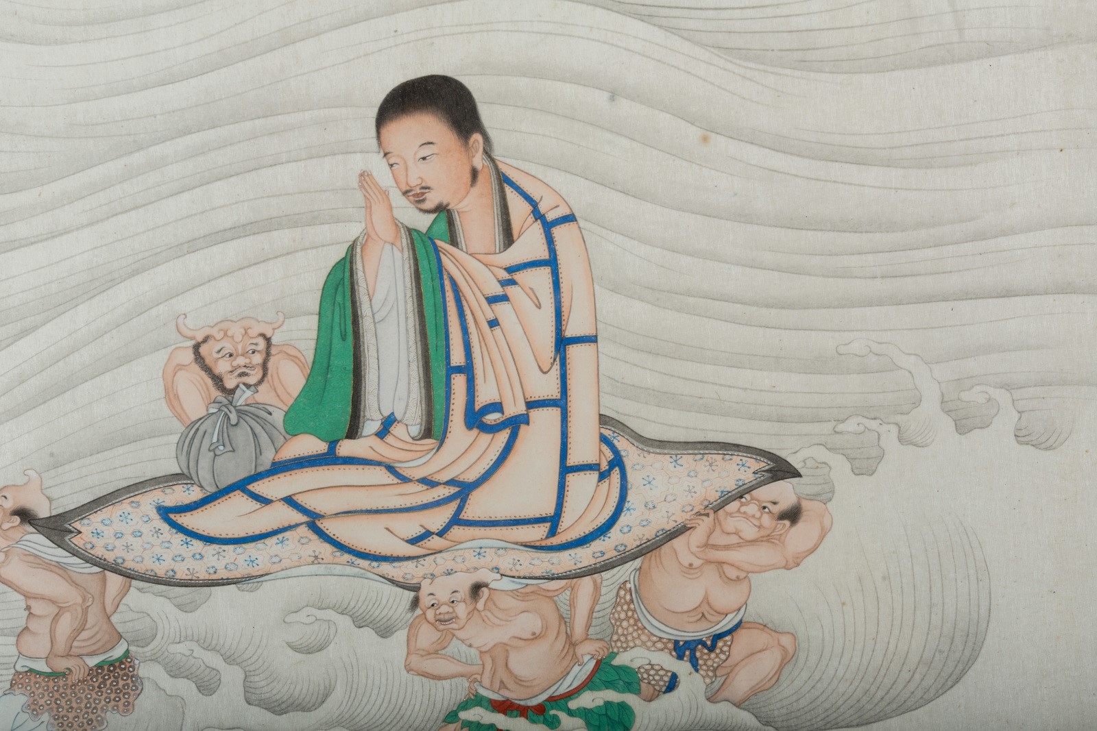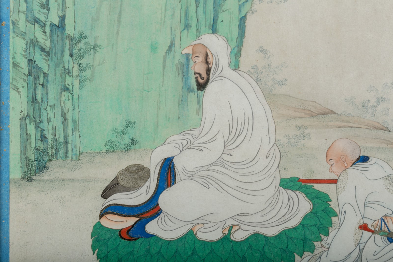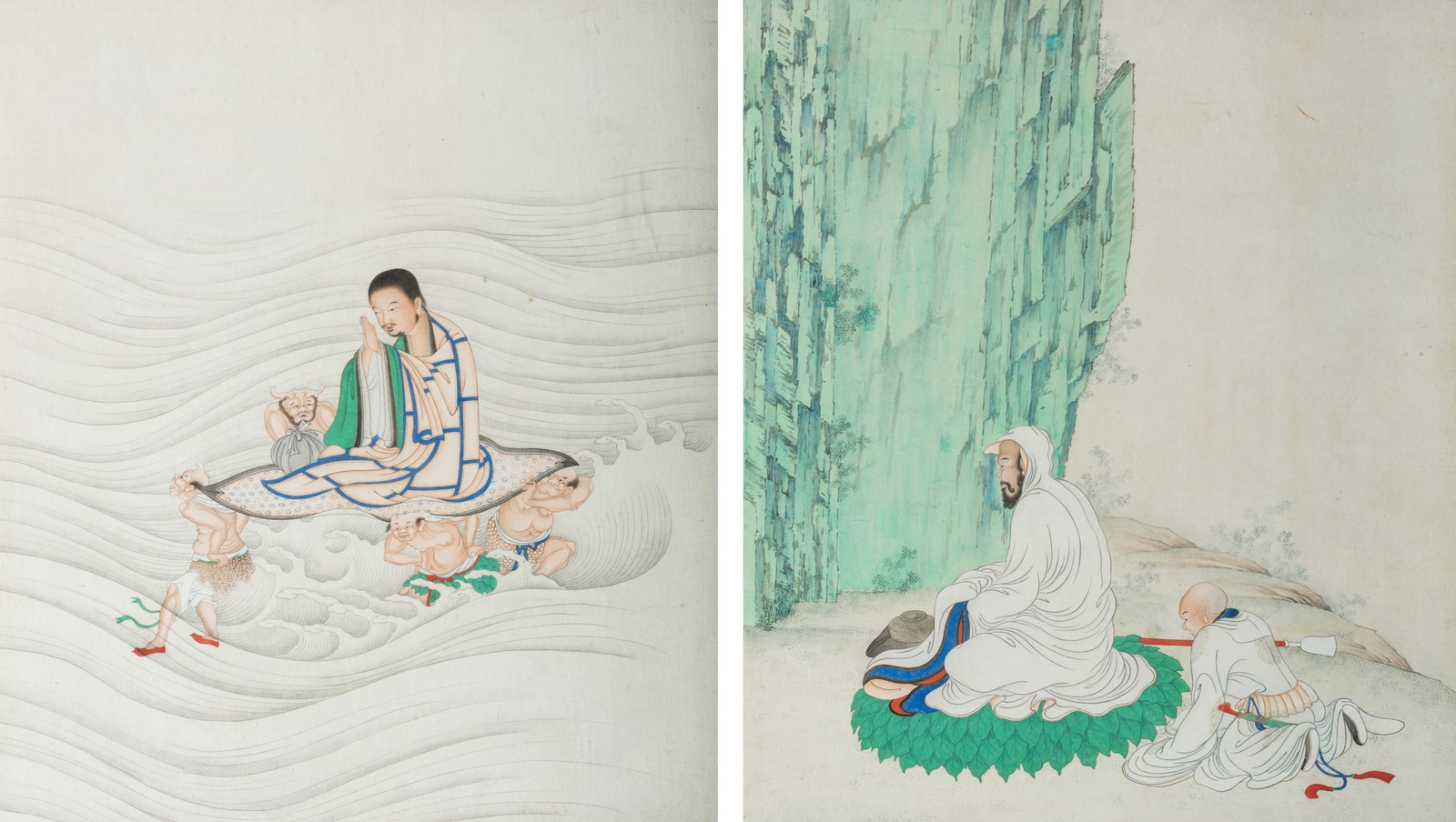 Arte Cinese A pair of finely painted watercolor of two Arhats probably from a complete set of twelve or eighteen