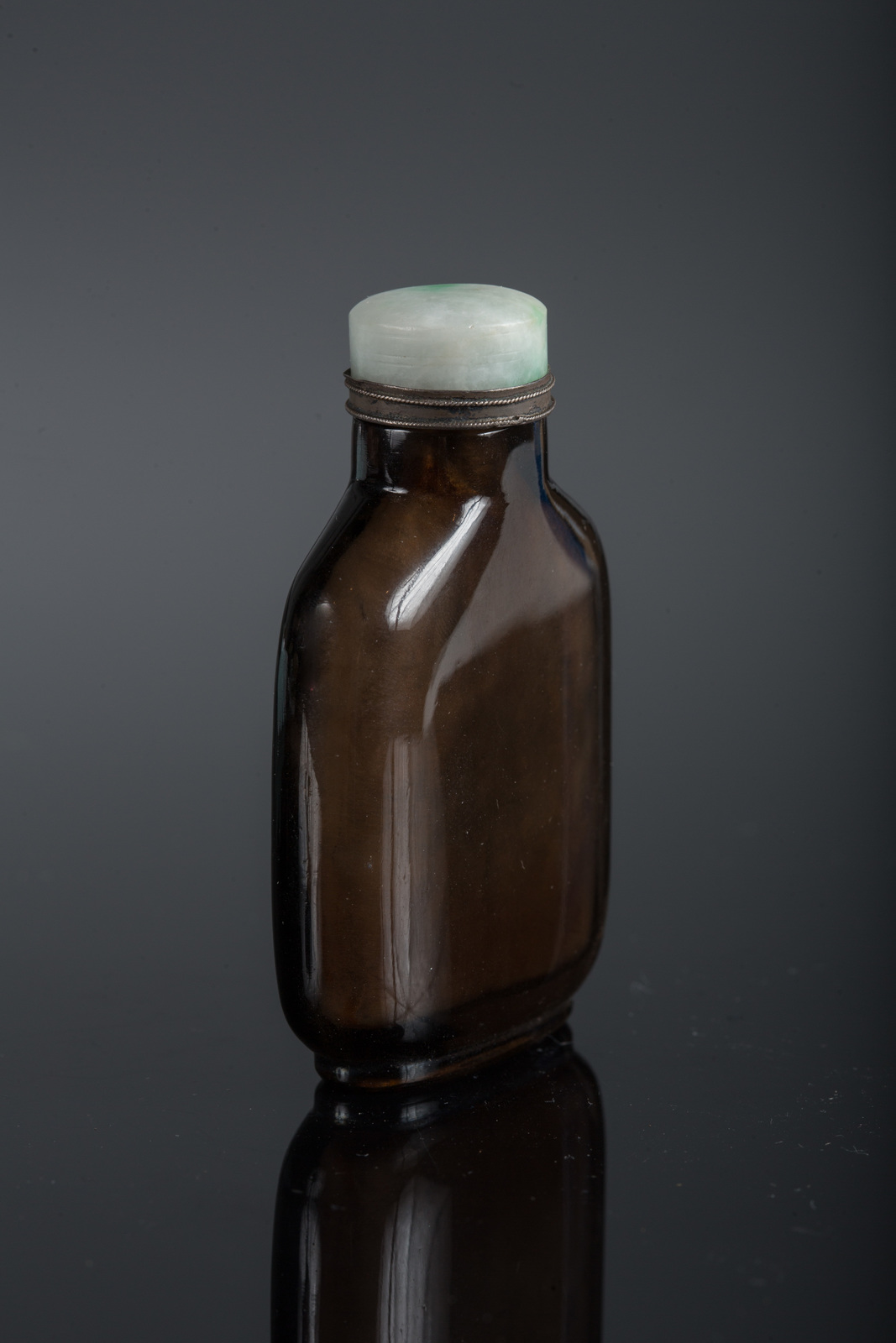 Cina, dinastia Qing, XIX secolo . -. Cm 4,00 x 6,50. Tappo in pasta di vetro e argento.