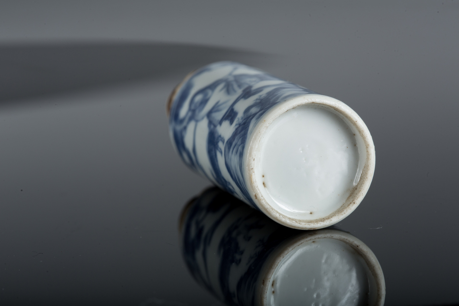 Arte Cinese Tabacchiera cilindrica in porcellana bianco/ blu dipinta con...