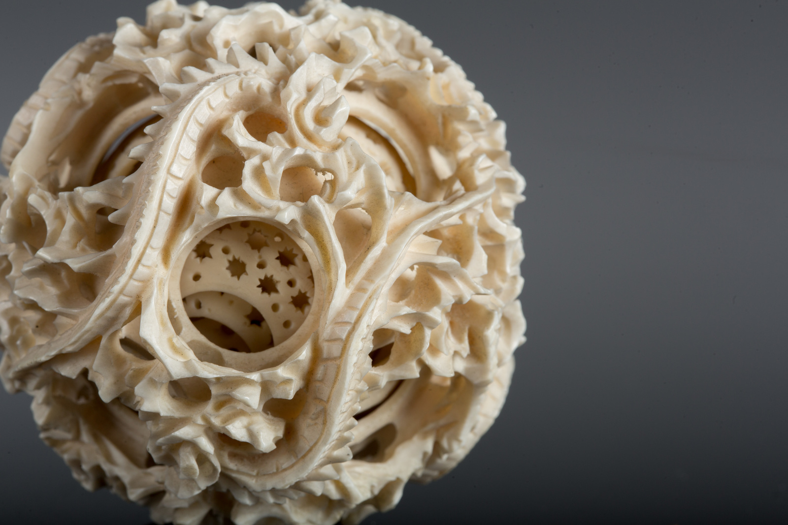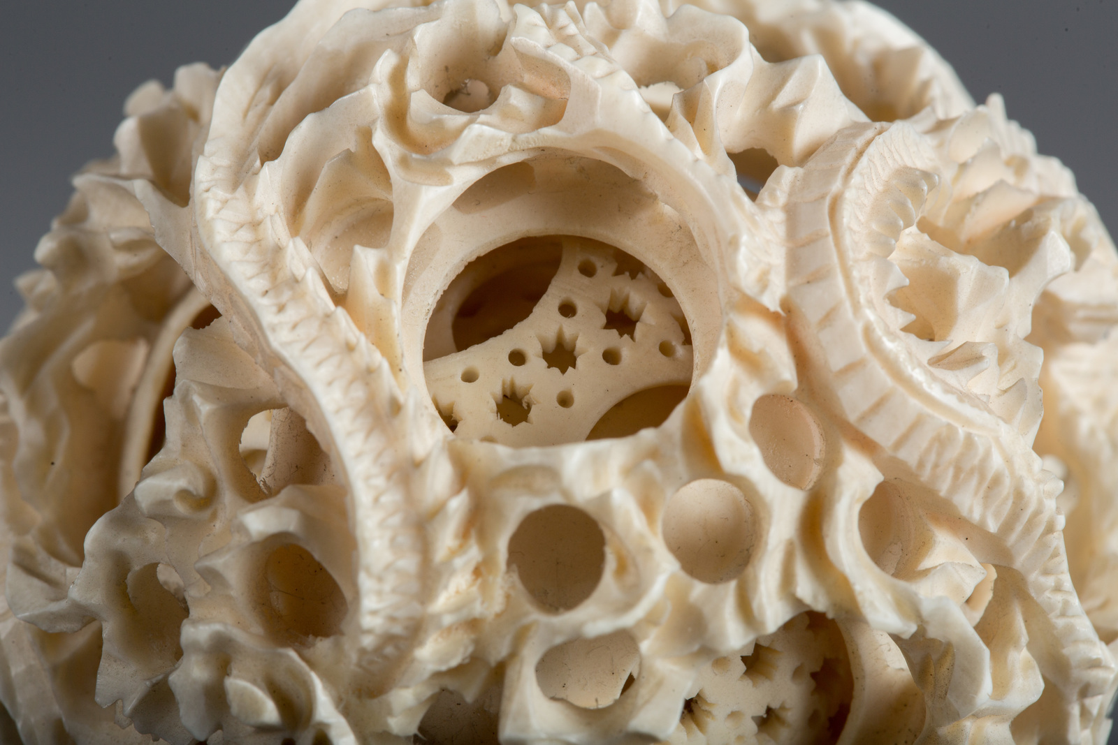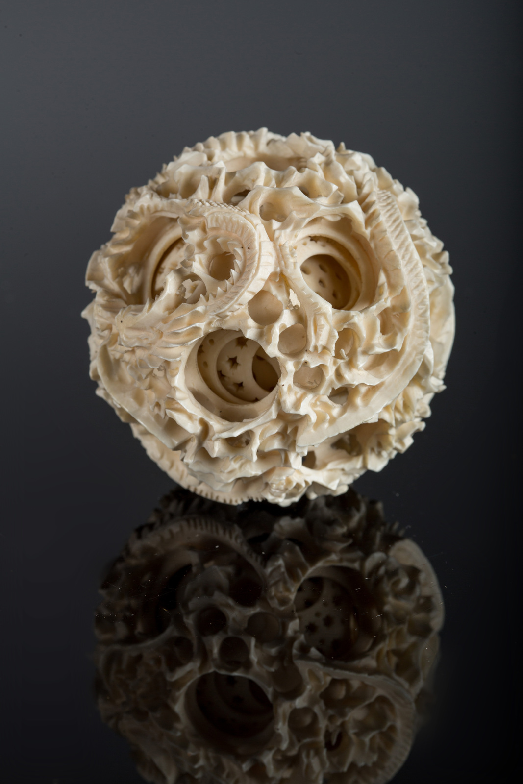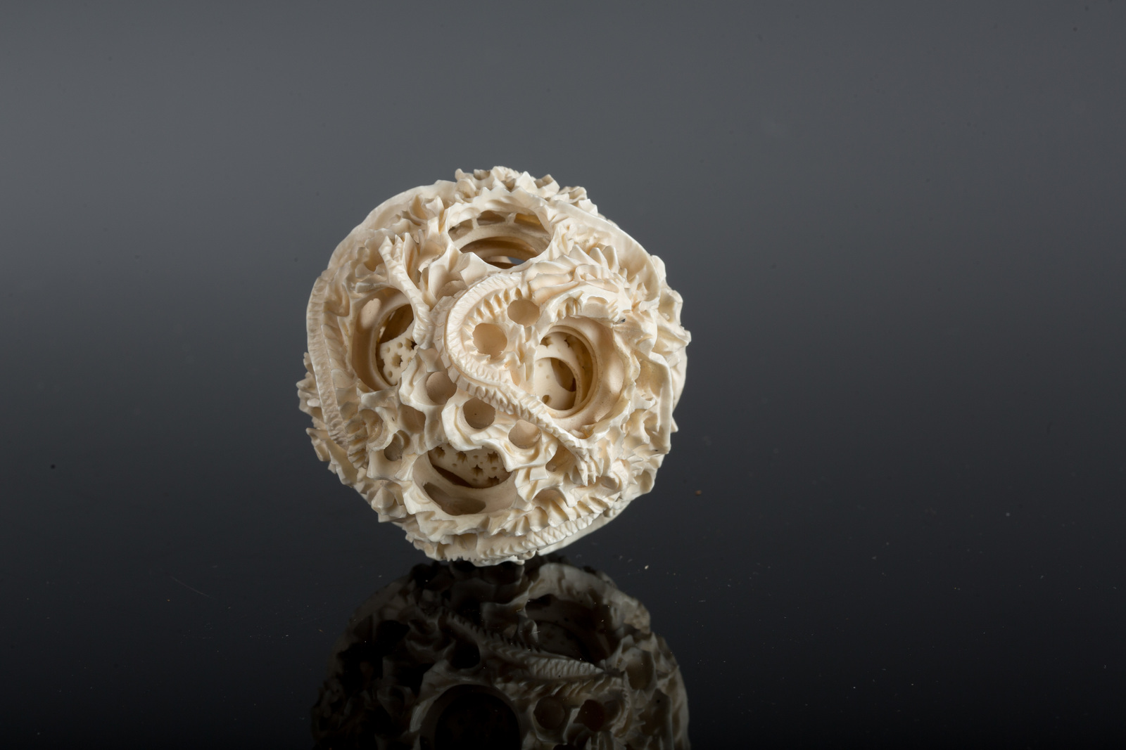 Arte Cinese Palla in avorio scolpito con dragoni Cina, dinastia Qing, XIX...
