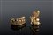 Giappone, XIX secolo . -. Cm 5,00. Uno raffigurante un topo su una conchiglia (l.5 cm); l'altro raffigurante un uomo ed un bambino sotto l'ombrello (h.5 cm)