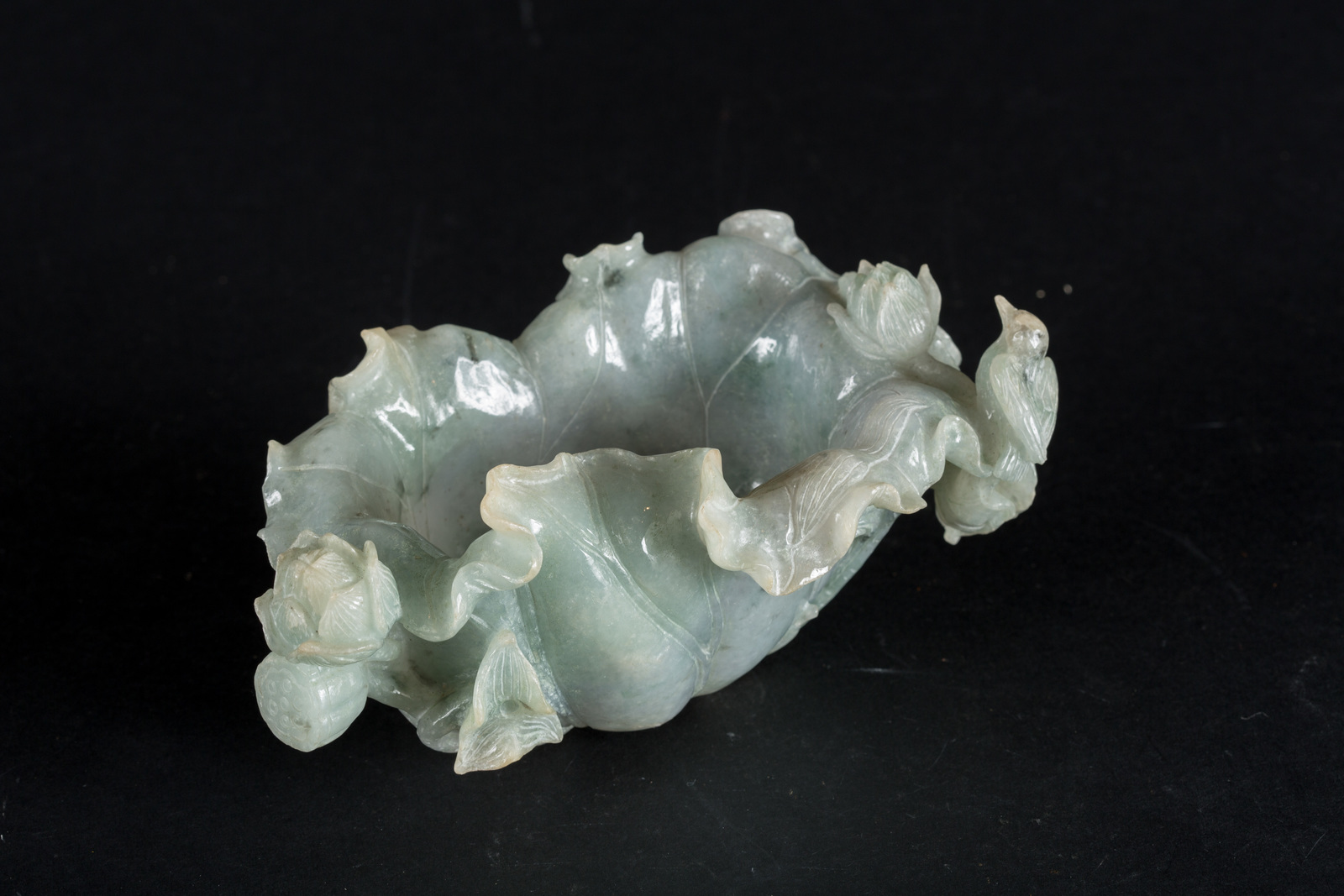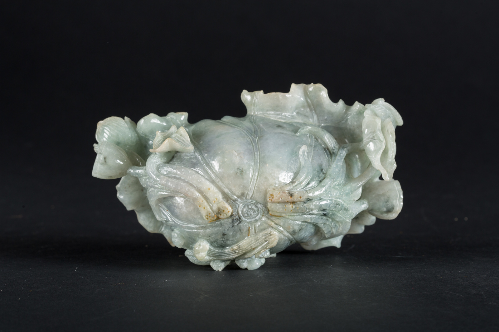 Arte Cinese Coppa in giadeite intagliata con pesci Cina, fine XIX - inizi XX...