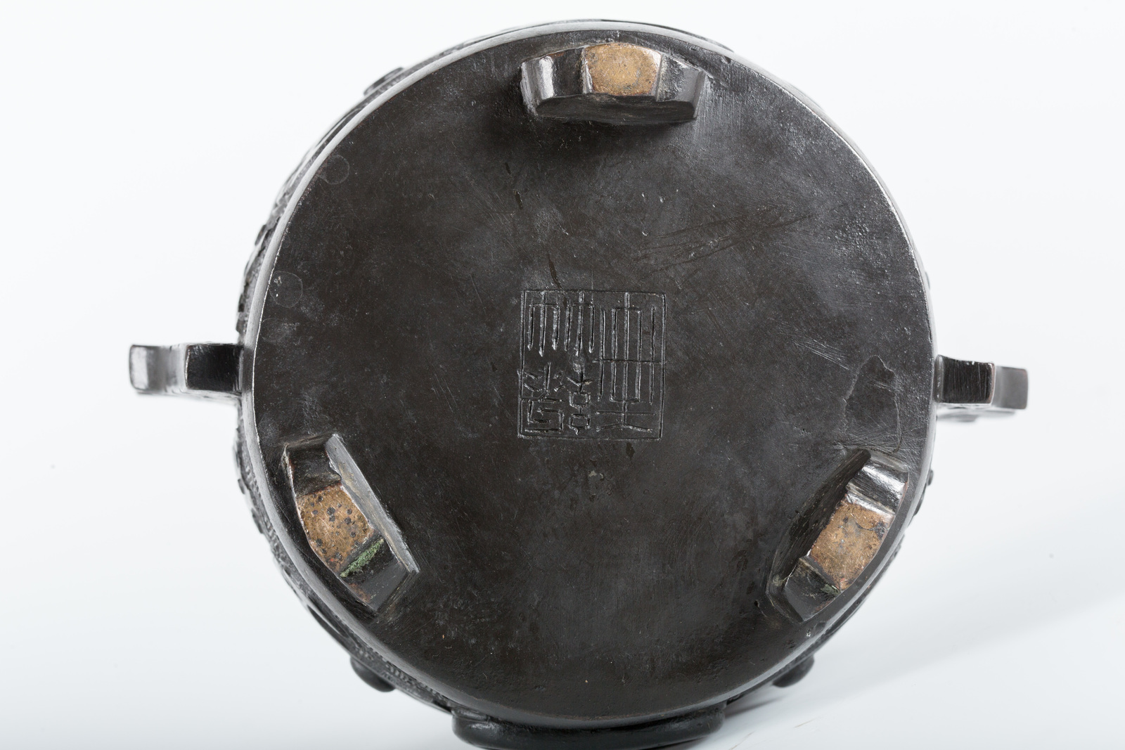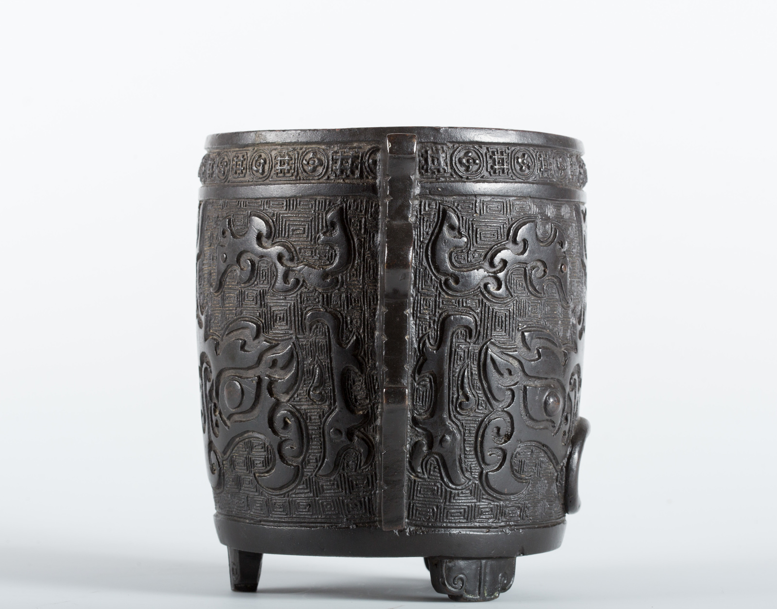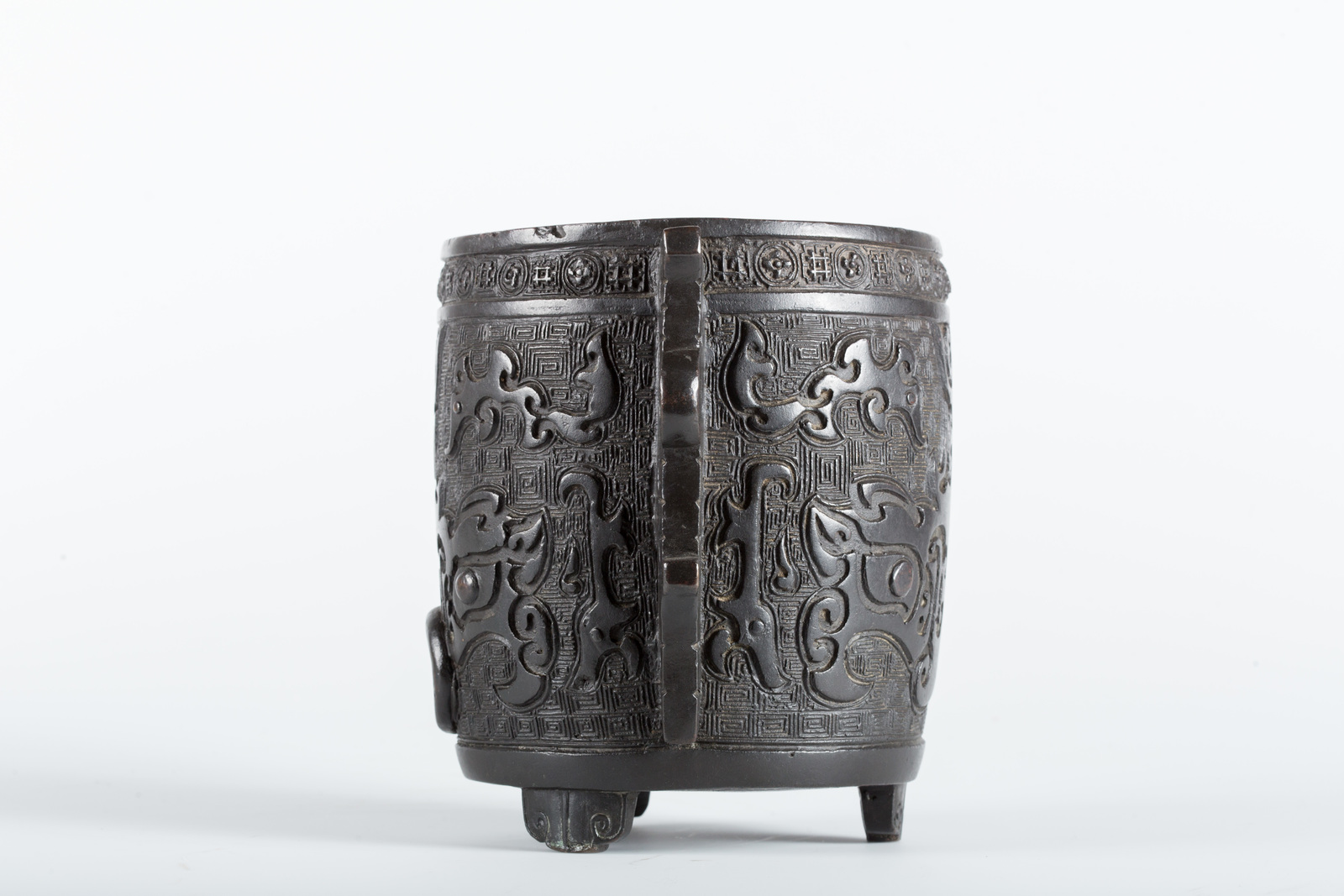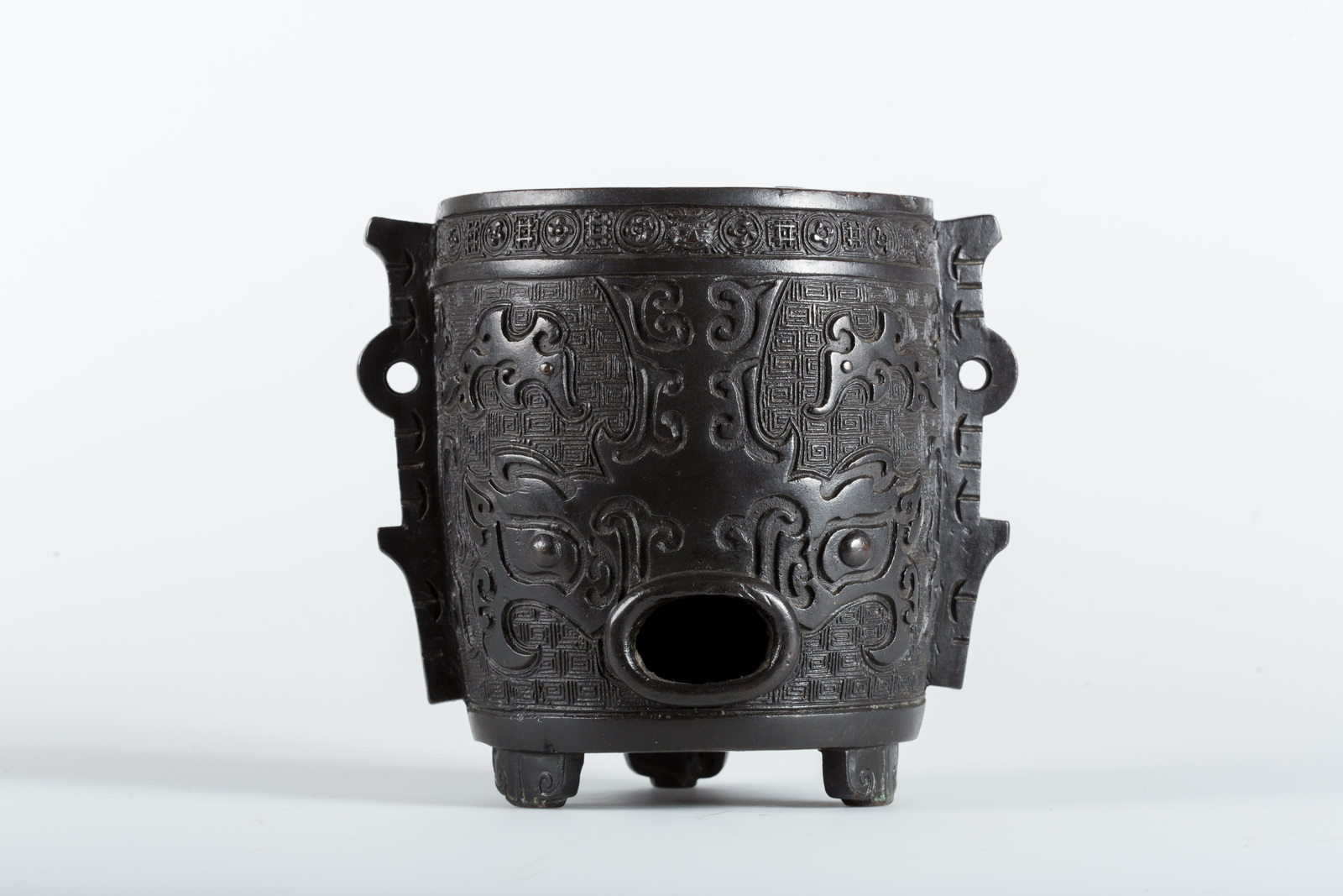 Arte Cinese Incensiere in bronzo in stile arcaico con taotie marcato Yuan Caochui sulla base