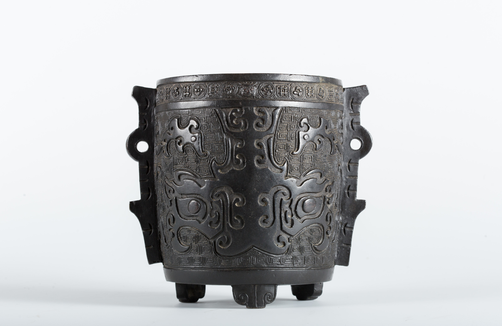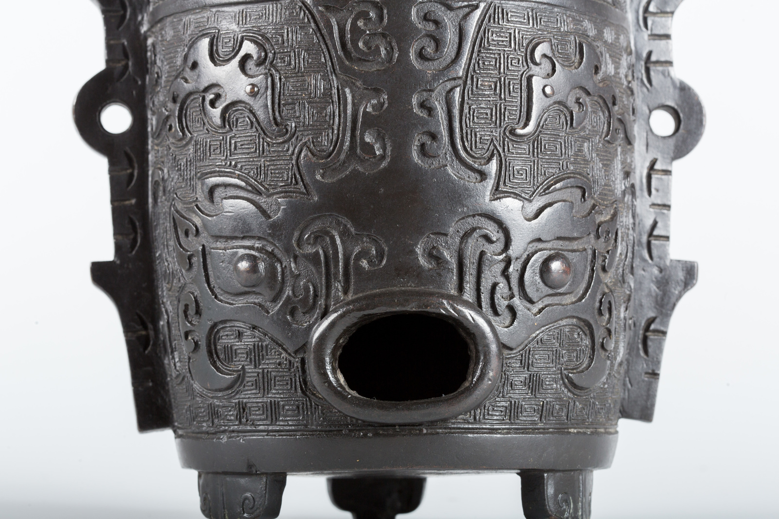 Arte Cinese Incensiere in bronzo in stile arcaico con taotie marcato Yuan...
