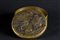 Arte Giapponese Scatola circolare in ottone decorata in rilievo con due figure parzialmente dorate