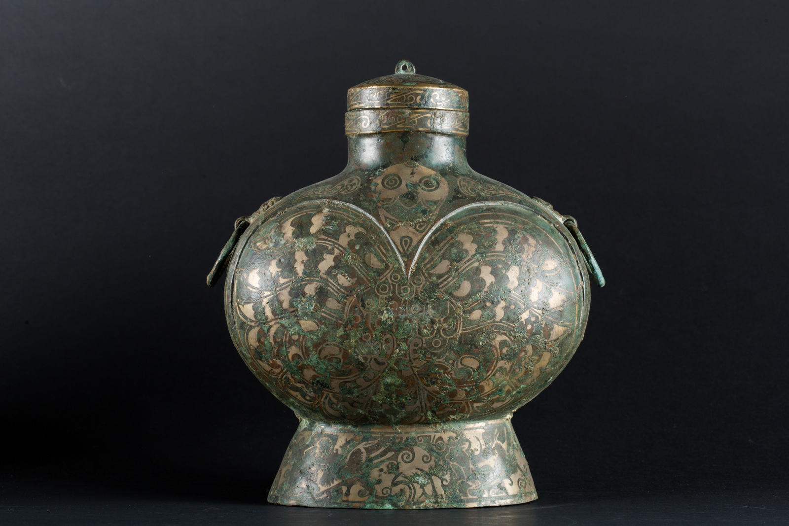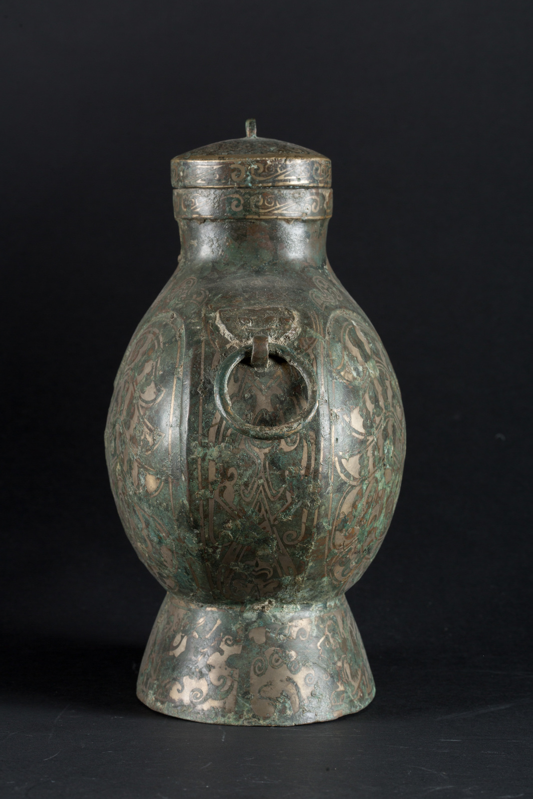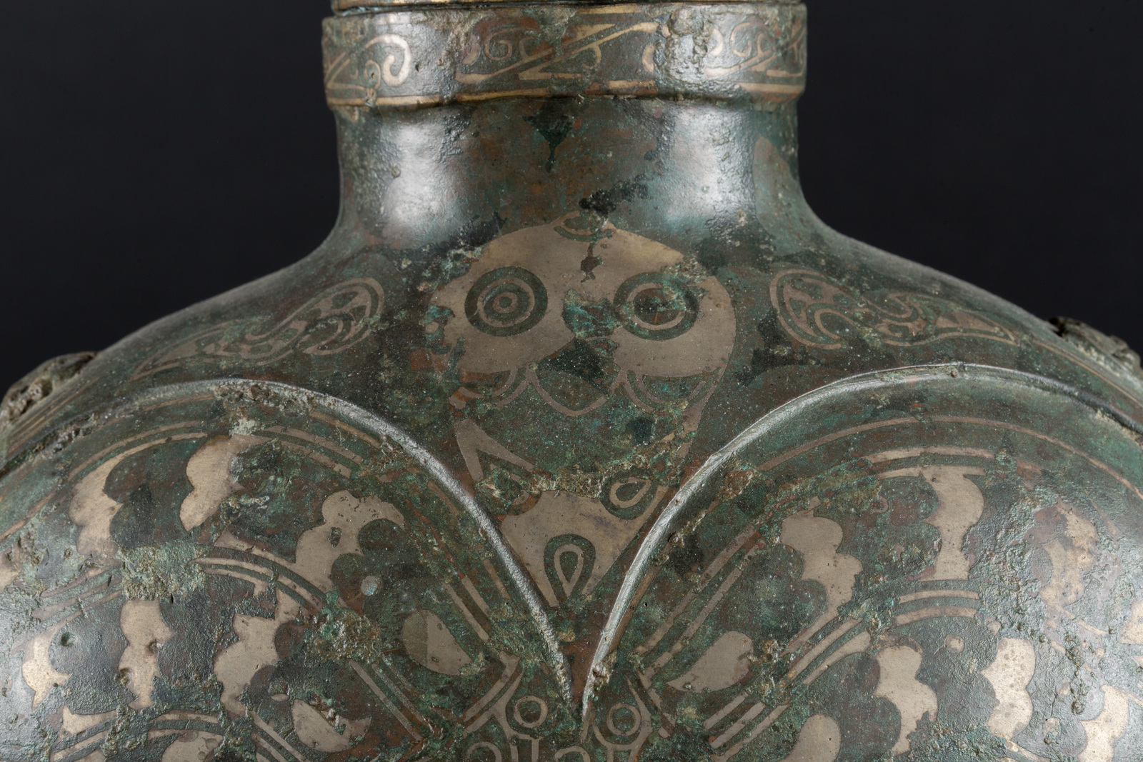 Arte Cinese A bronze flask with silver inlays in the Han style
