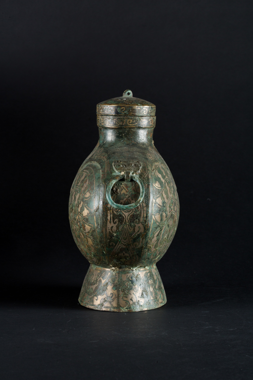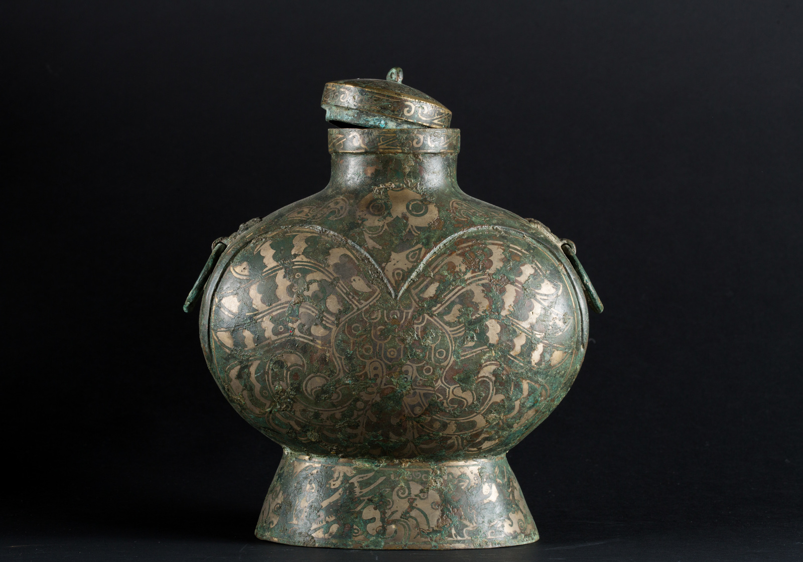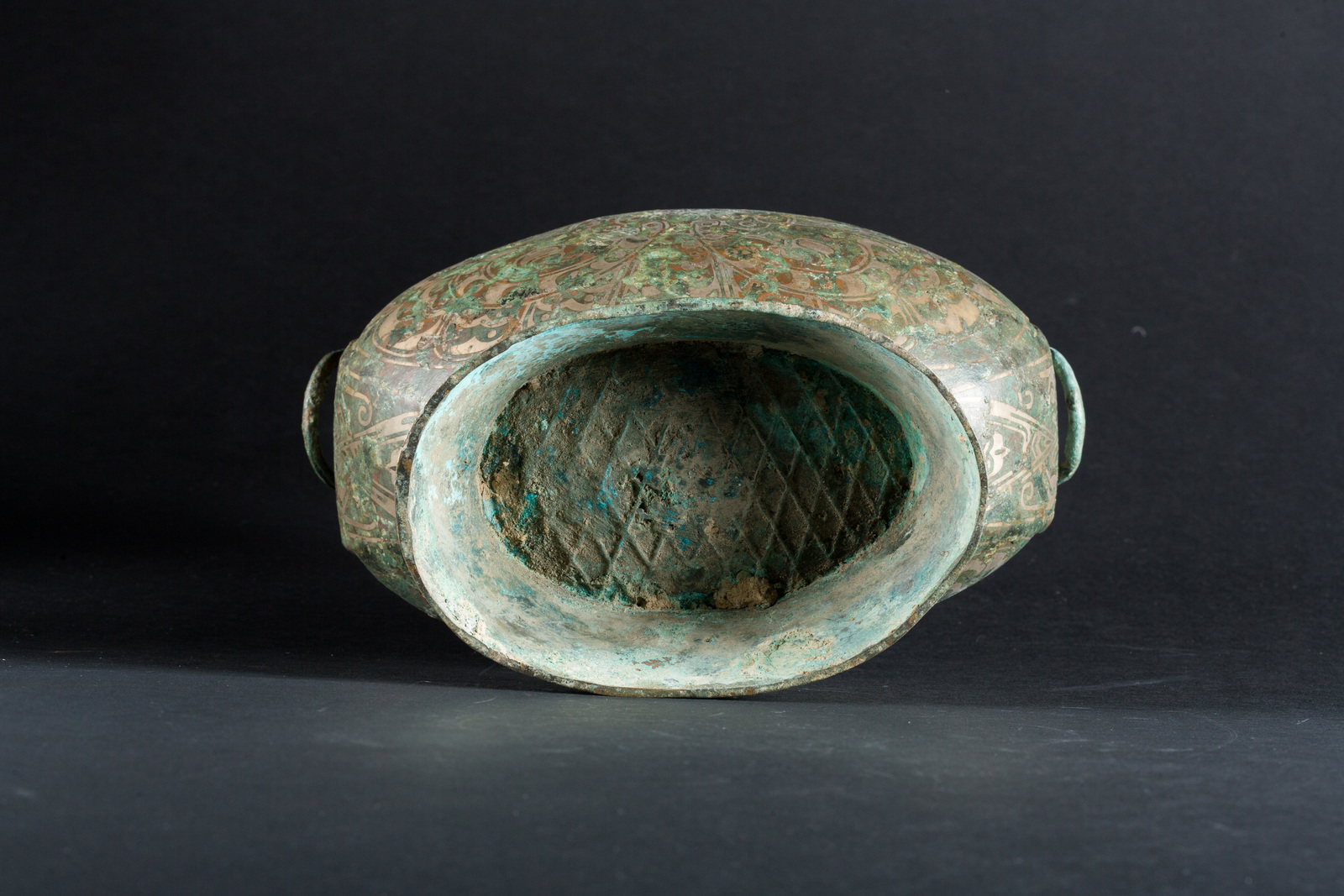 Arte Cinese A bronze flask with silver inlays in the Han style