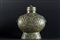 Cina, dinastia Qing, XIX secolo . -. Cm 26,00 x 27,00 x 14,00. Fusione in bronzo poggiante su base circolare, il corpo ovale ed il collo stretto terminante con tappo. Due manici circolari completano i lati dell'oggetto, mentre tutto il corpo presenta inserti in argento arrangiati a formare decori stilizzati in forma di animali fantastici ed elementi vegetali.