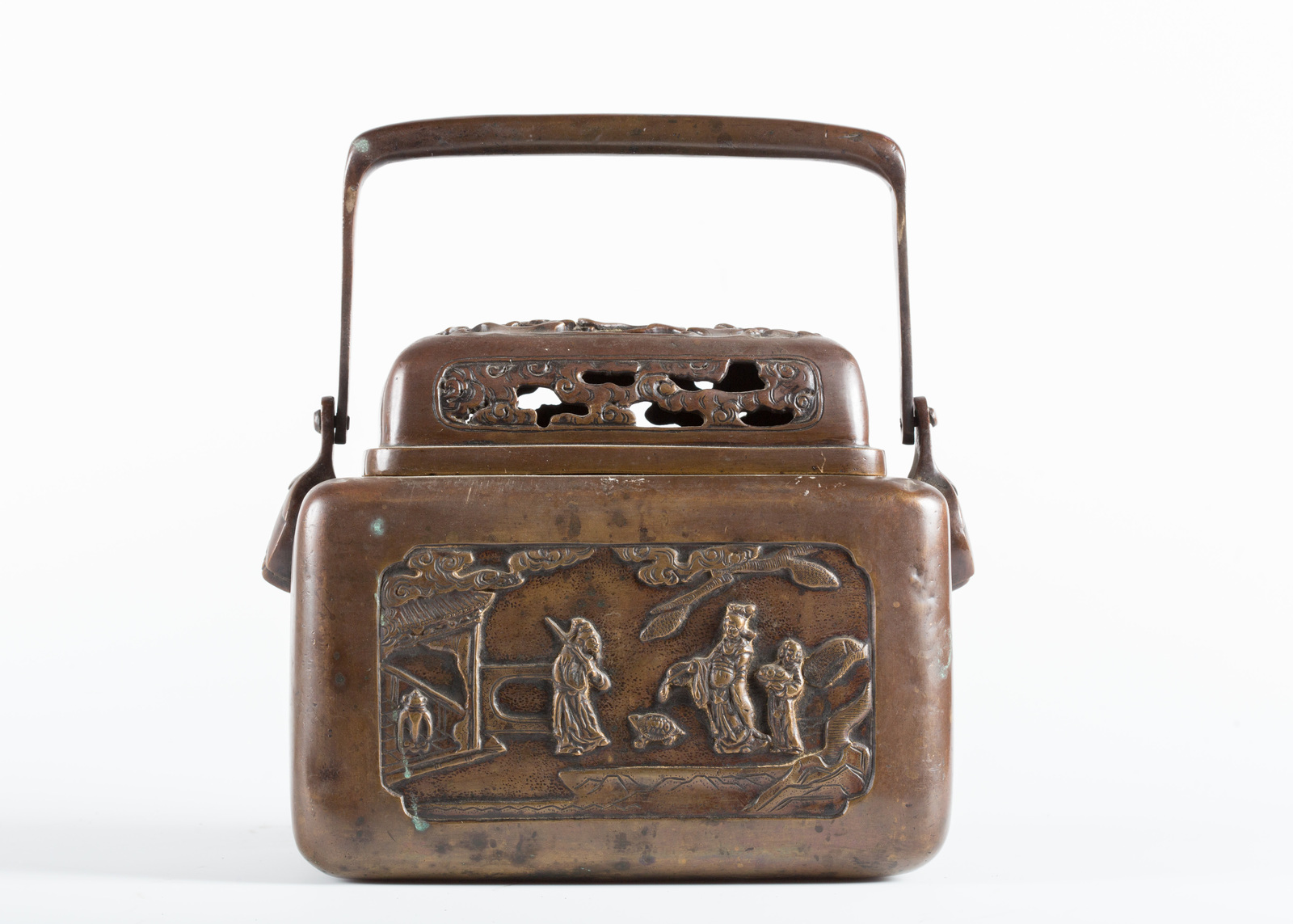 Arte Cinese Scaldamani rettangolare in bronzo marcato Xuande sulla base Cina,...