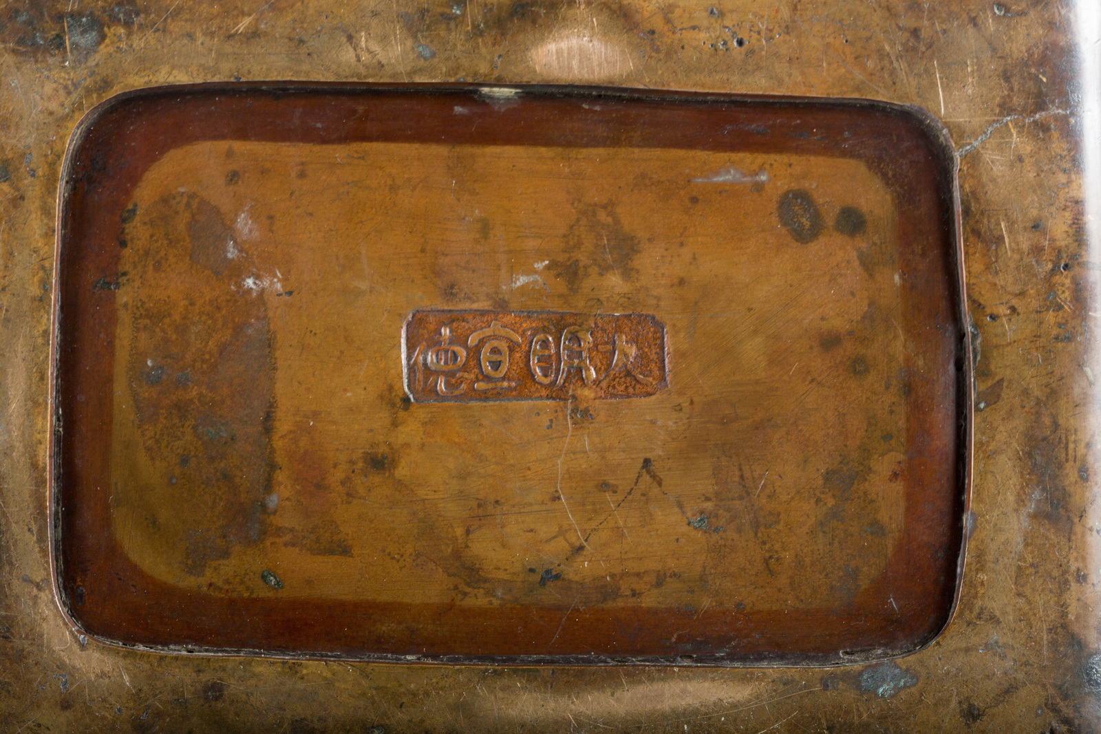 Arte Cinese Scaldamani rettangolare in bronzo marcato Xuande sulla base