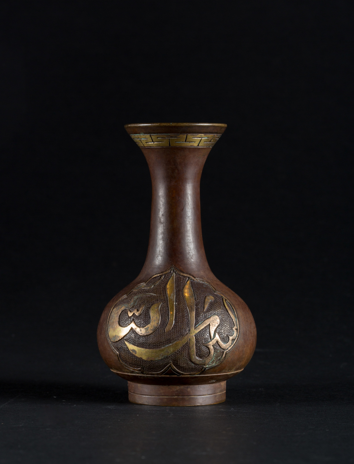 Arte Cinese Piccolo vaso in bronzo con iscrizioni dorate in arabo