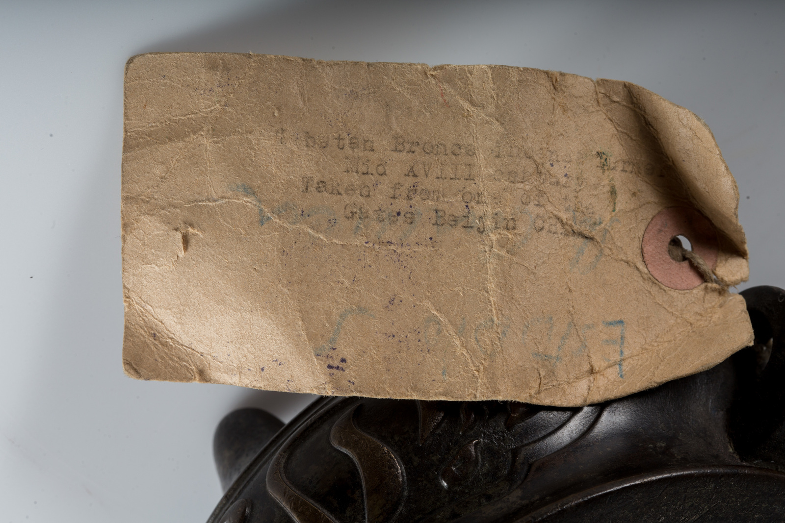 An old label on one of the handles tells that the item was taken from the Beijing Palace.