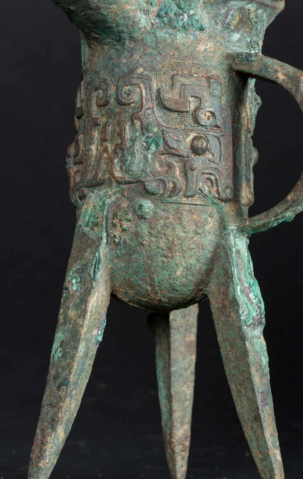Arte Cinese A bronze tripod ritual wine vessel Jue