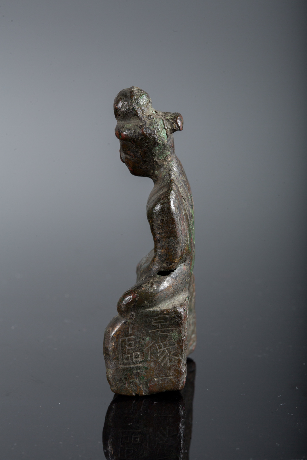 Arte Cinese Statua in bronzo raffigurante un discepolo di Buddha