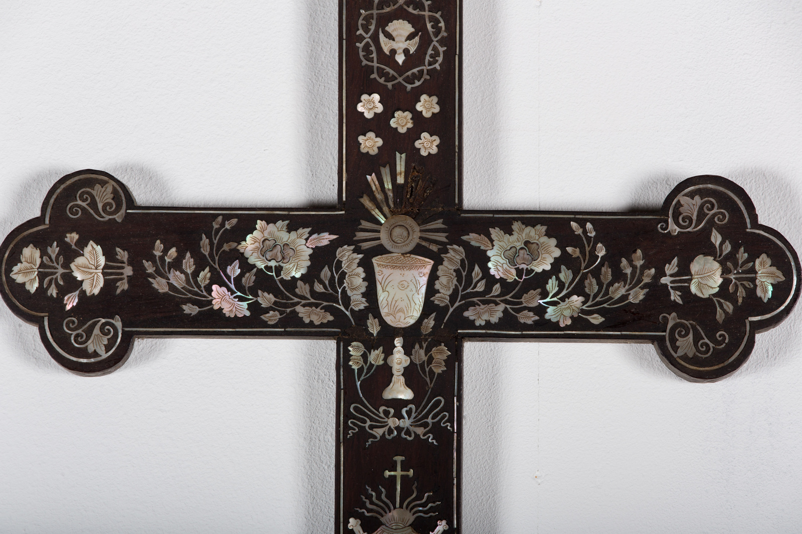 Arte Cinese A wooden apostle cross with mother of pearl inlay