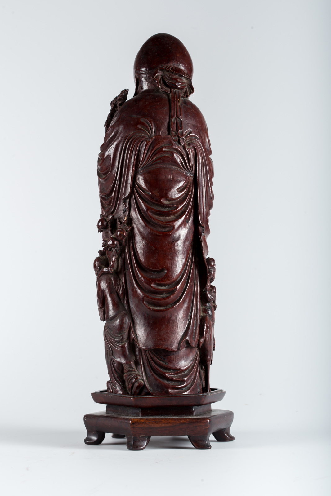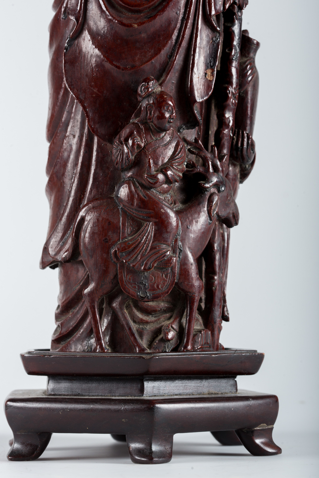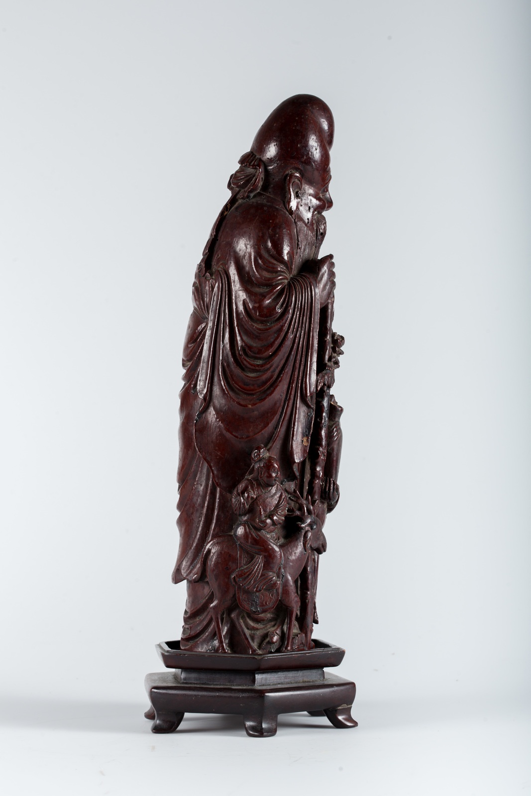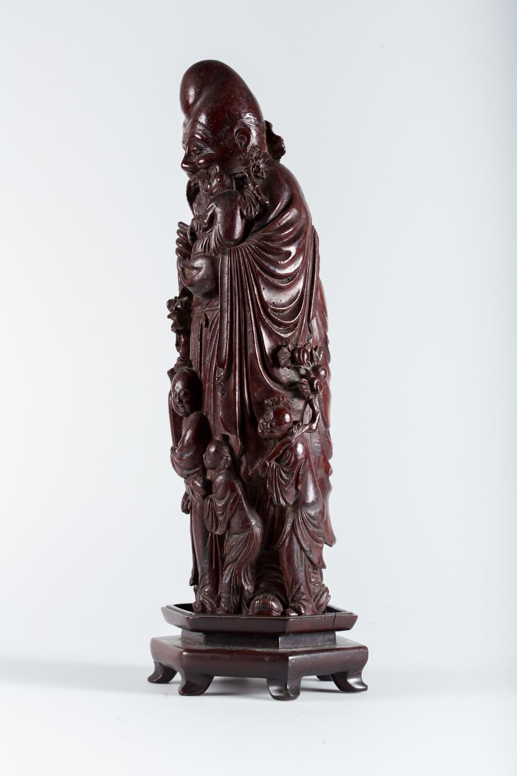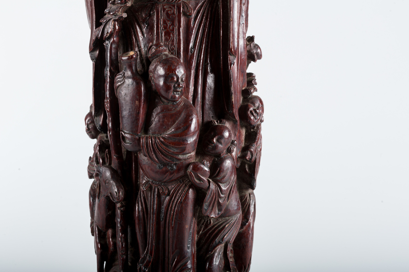 Arte Cinese Carved bamboo depicting a Shoulao with children and maiden and a deer around him