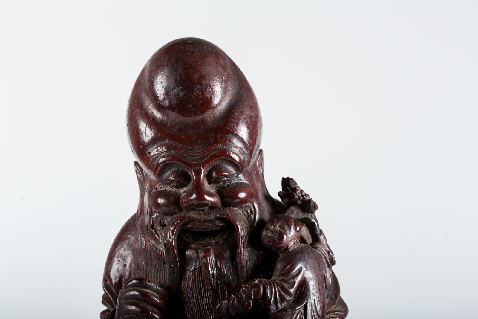 Arte Cinese Intaglio in bamboo raffigurante Shulao con bambini ed un cervo