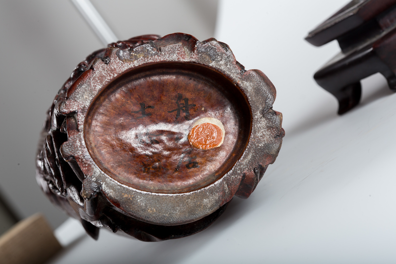 Arte Cinese Intaglio in bamboo raffigurante Shulao con bambini ed un cervo...