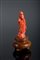 Arte Cinese A small coral sculpture portraying Guanyin on a wooden stand