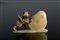 Arte Giapponese An ivory netsuke depicting a child pushing a Daruma doll. Signed Masa-Hiro