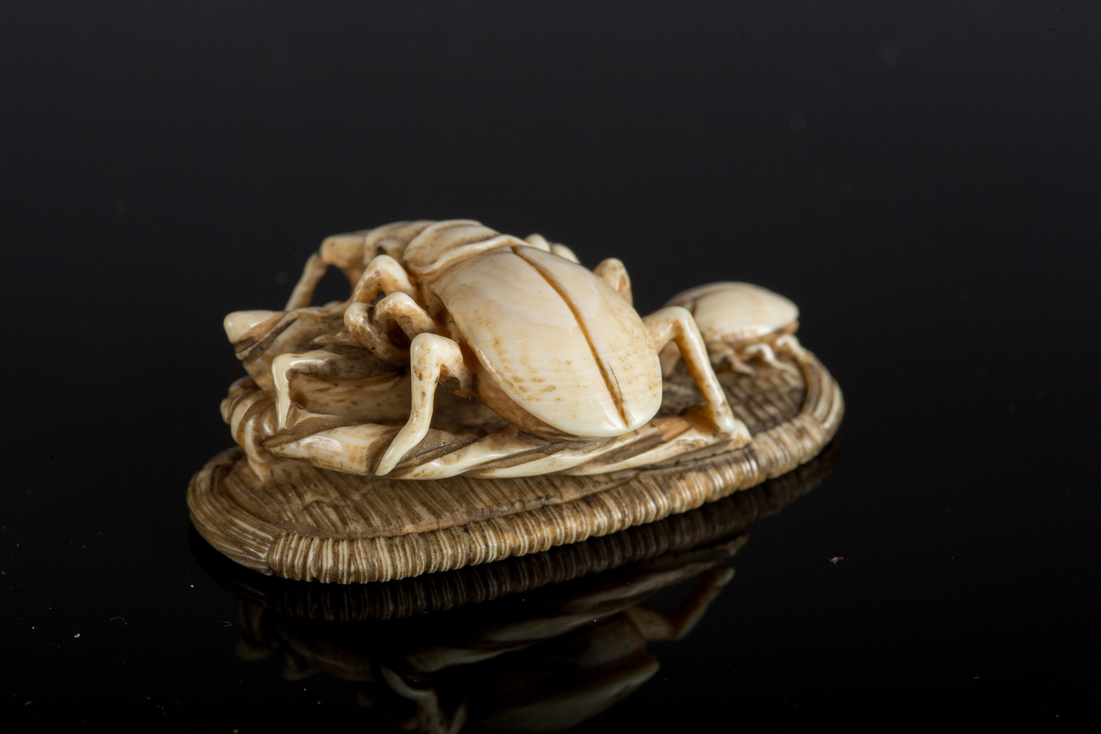 Arte Giapponese Netsuke in avorio raffigurante un gruppo di insetti