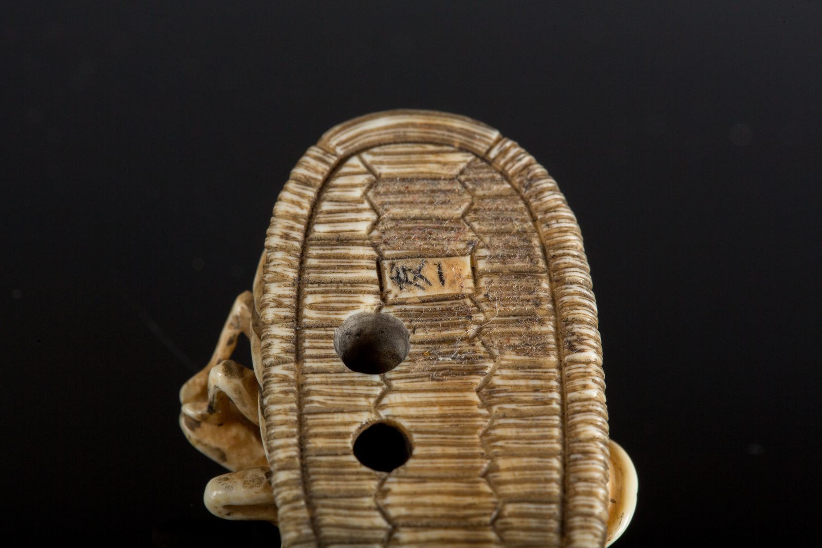 Giappone, XIX secolo . -. Cm 4,50. Gruppo finemente intagliato. Firma Tomo Kazu sulla base.