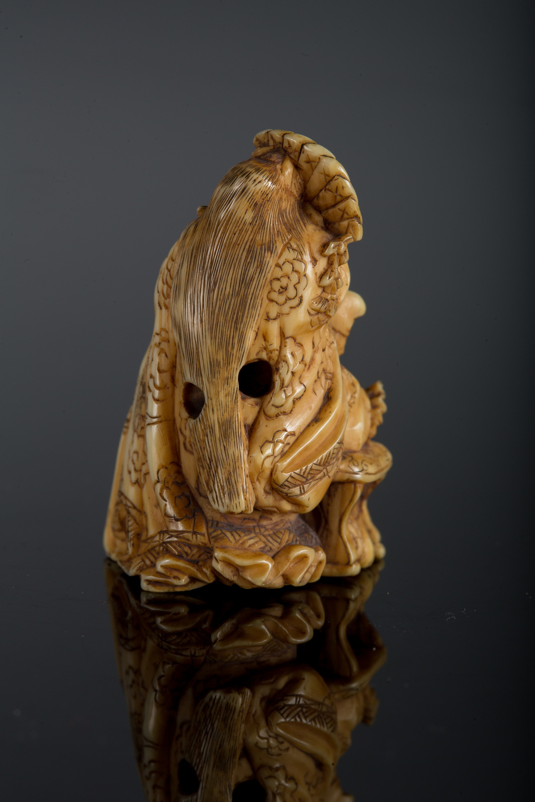 Lot 230 | Arte Giapponese Netsuke in avorio raffigurante un Samurai dietro un uomo...