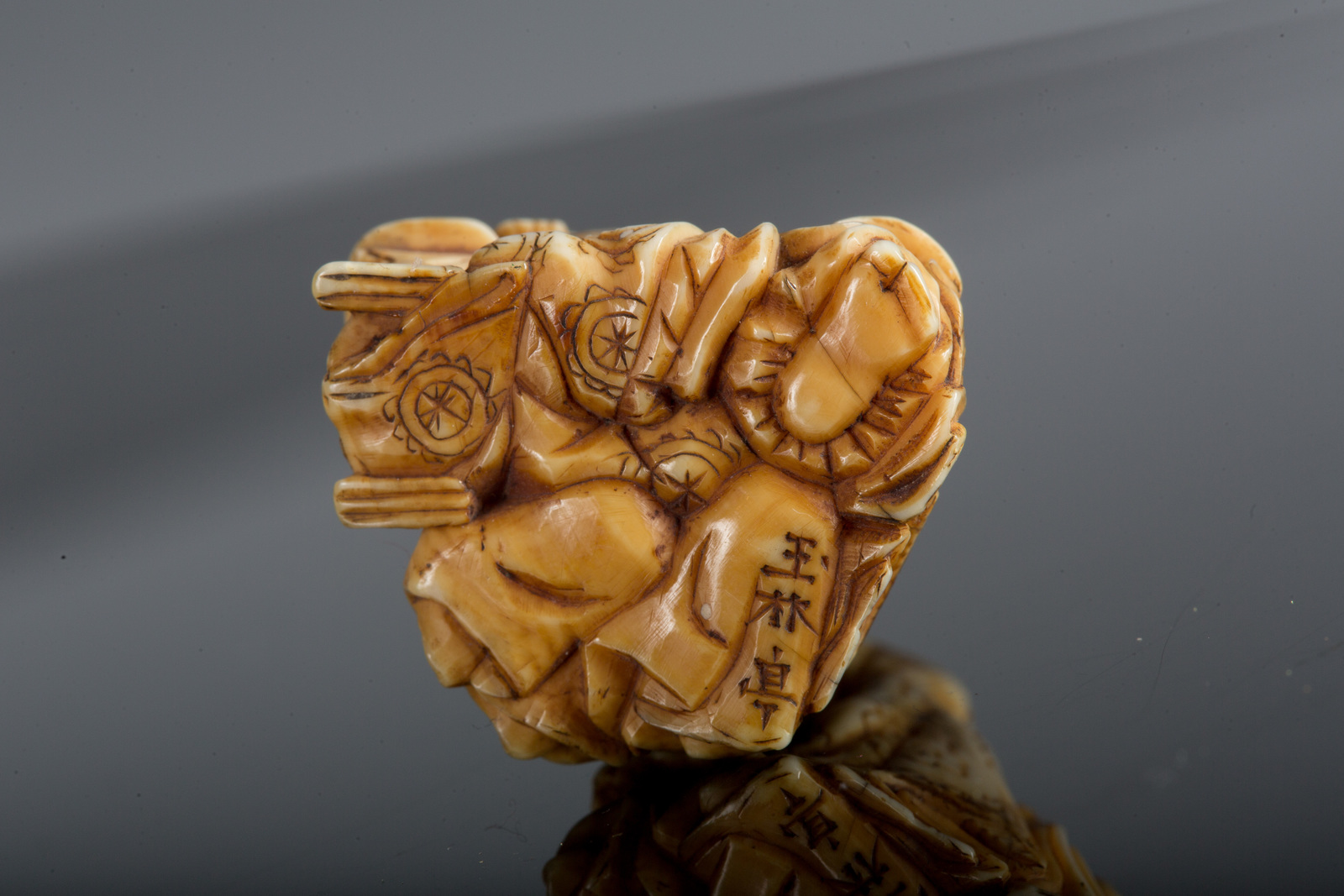 Arte Giapponese A netsuke depicting a group with Samurai and a seated man signed by Masa Mori Japan, 19th century . . Cm 4,50.