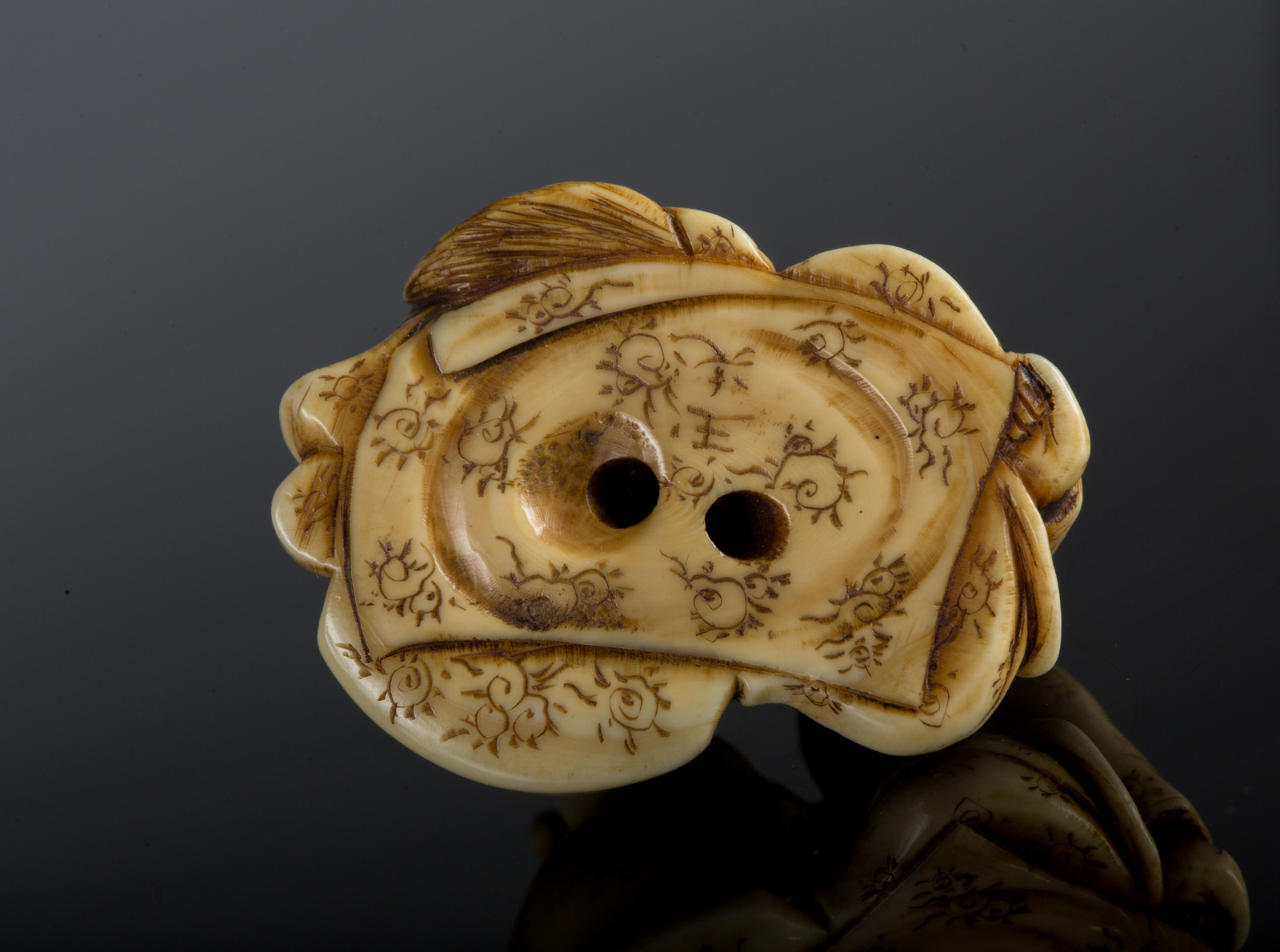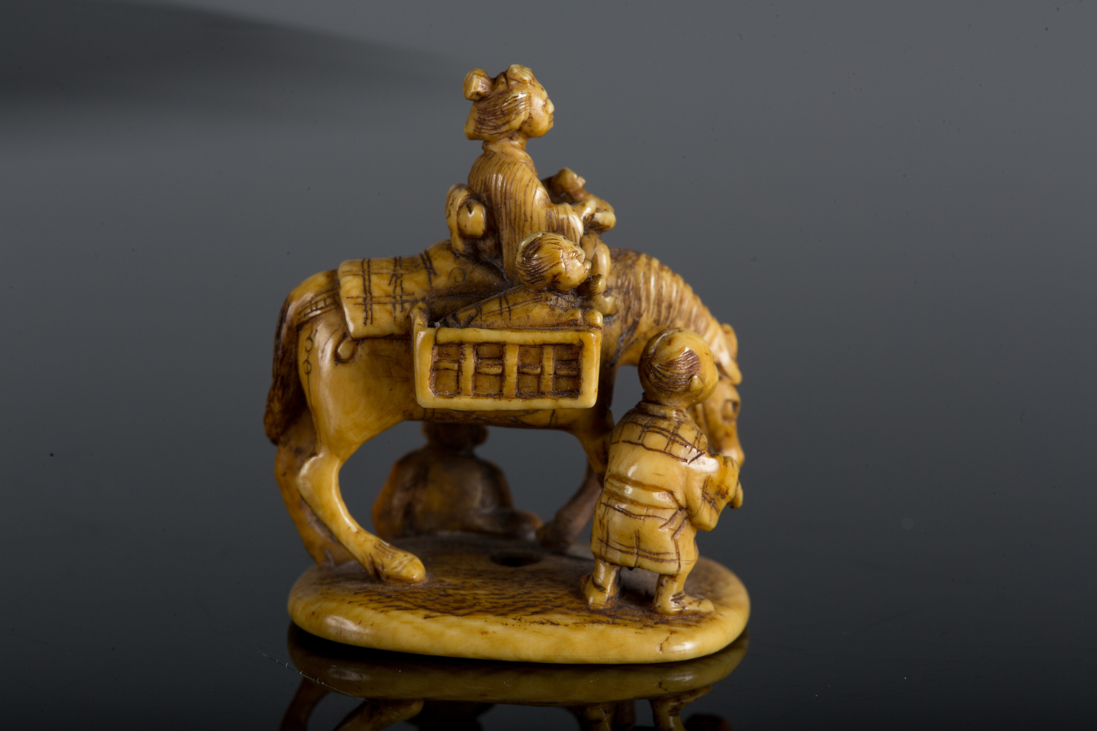 Arte Giapponese Netsuke in avorio raffigurante dei contadini su un carretto....