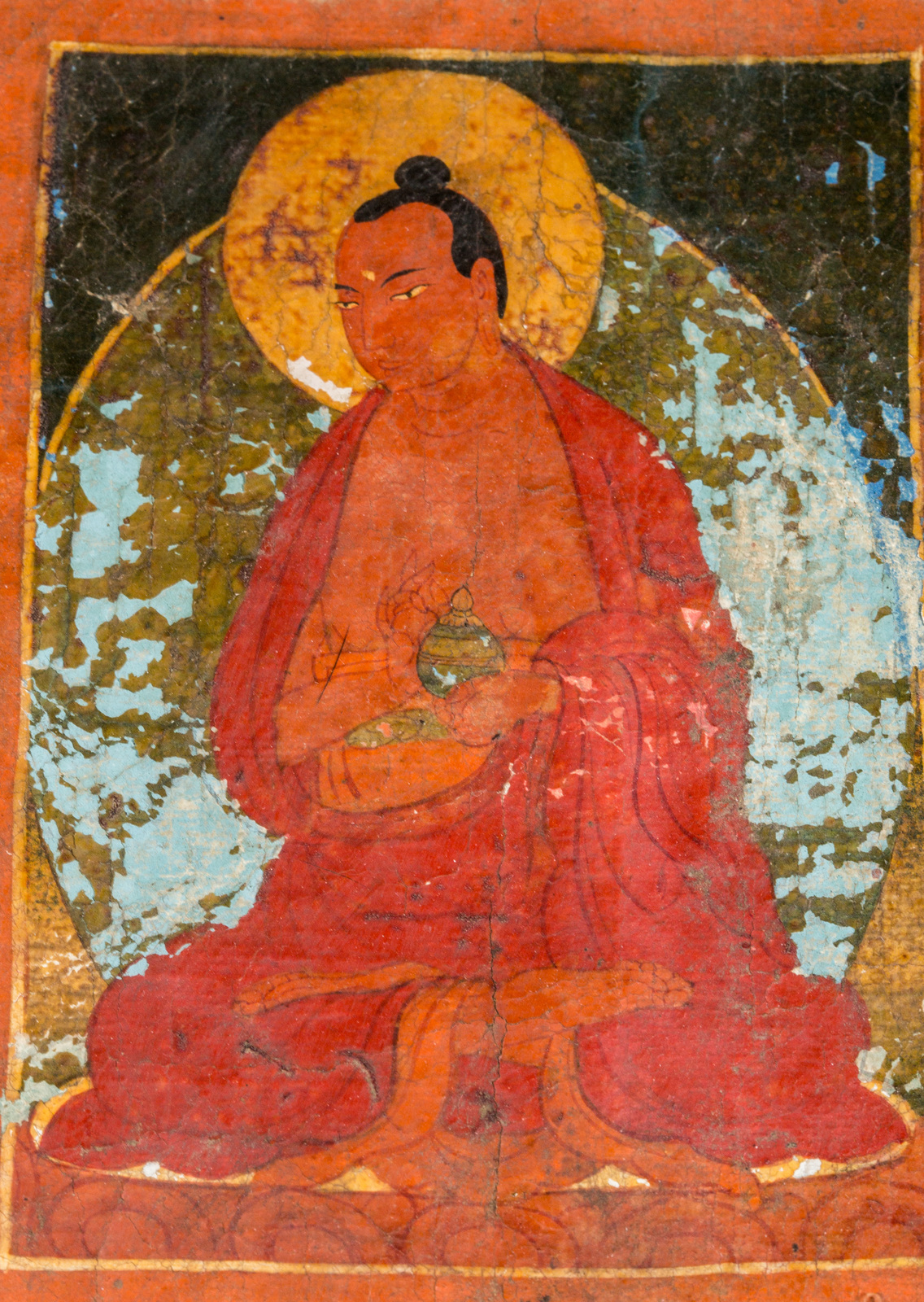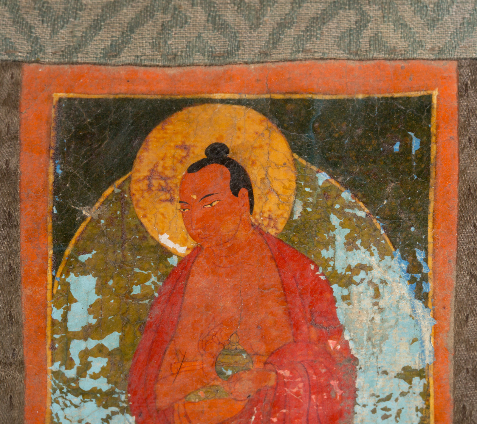 Arte Himalayana A small thangka possibly depicting the Arhat Abheda Tibet, 17th century . . Cm 10,50 x 28,00.