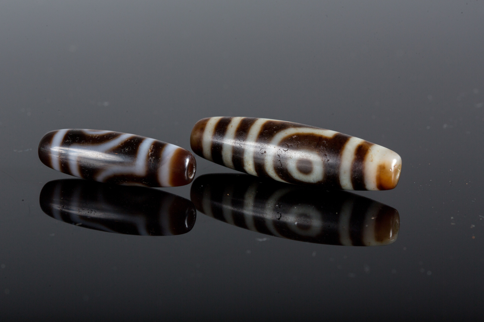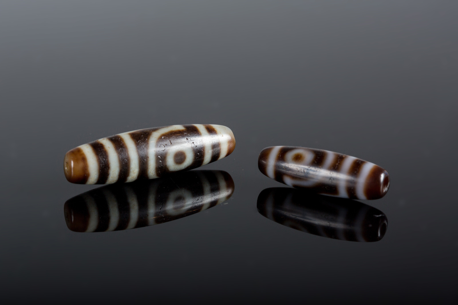 Arte Himalayana One small two eyed dzi and one bigger two eyed agate dzi