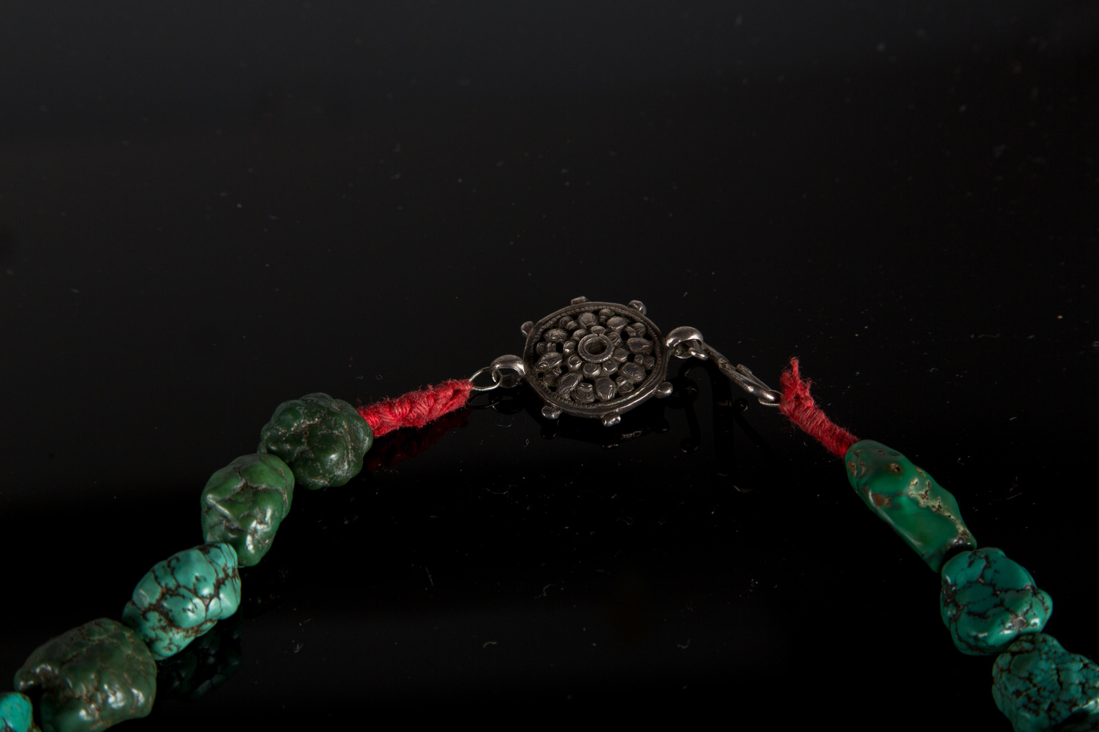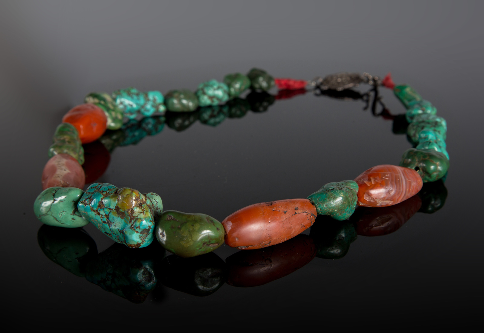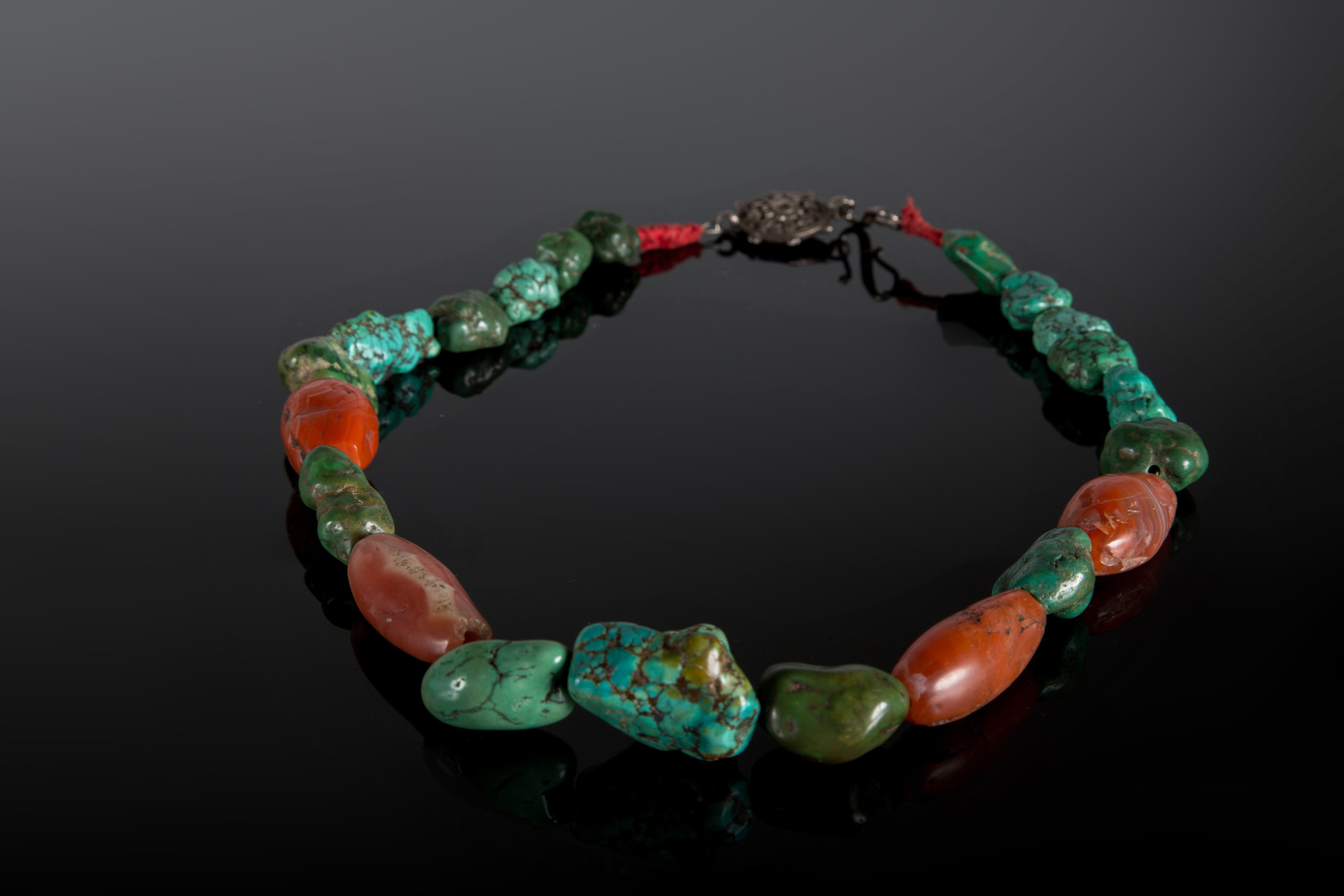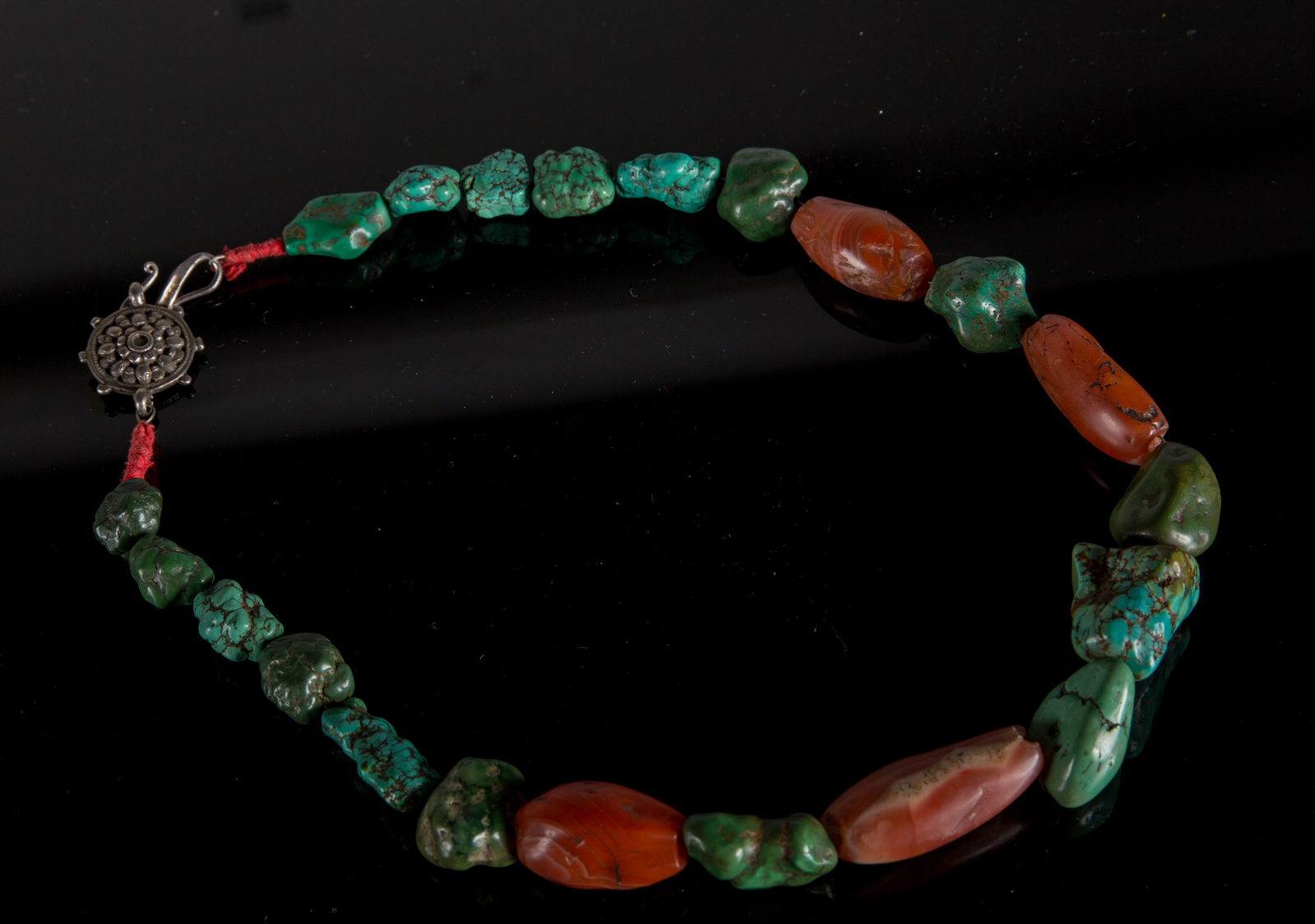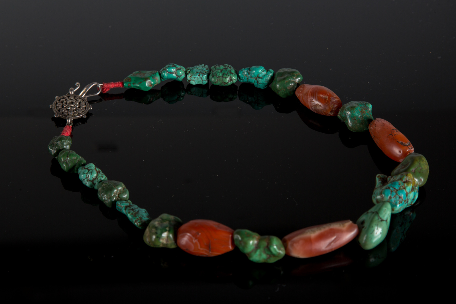 Arte Himalayana Grande collana con turchesi e corniole di scavo