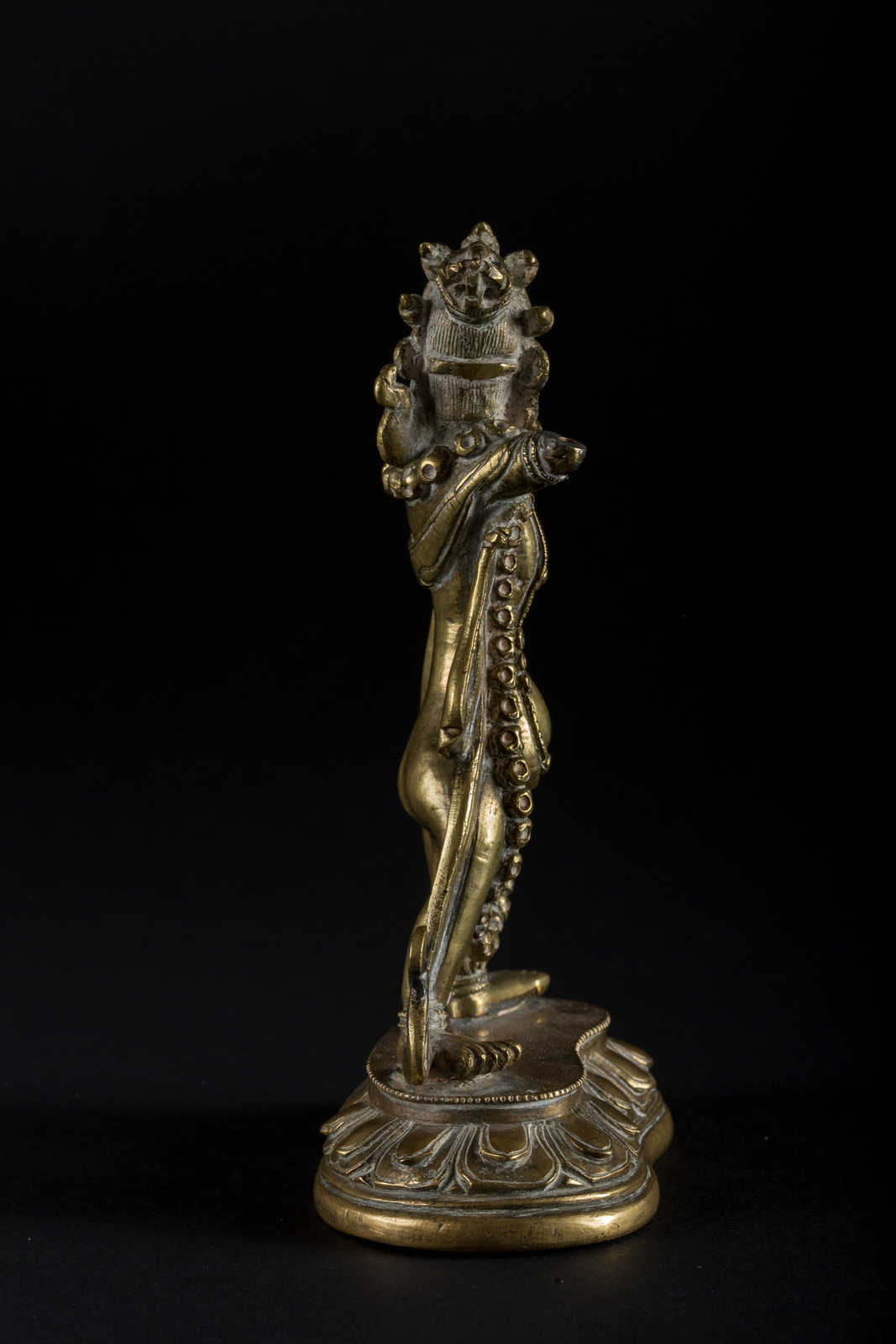 Arte Cinese A bronze figure of a Dakini standing on a lotus base