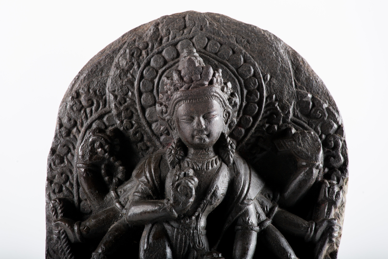 Arte Himalayana Scultura in pietra scura raffigurante Amoghapasa