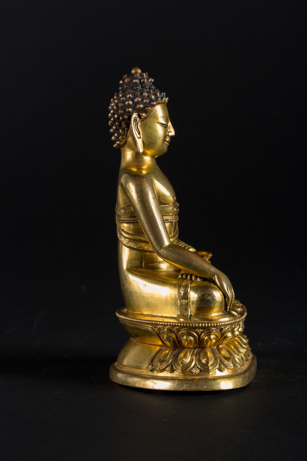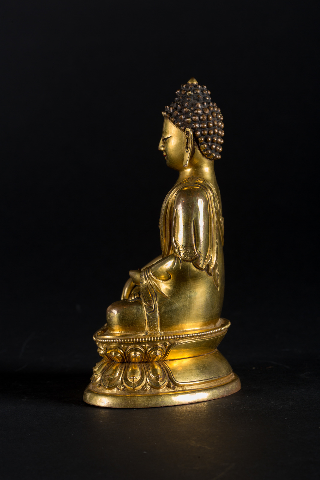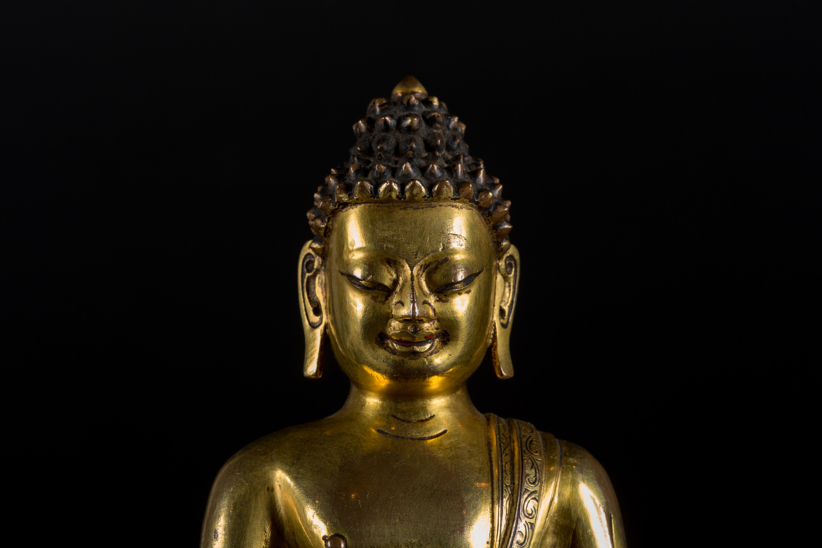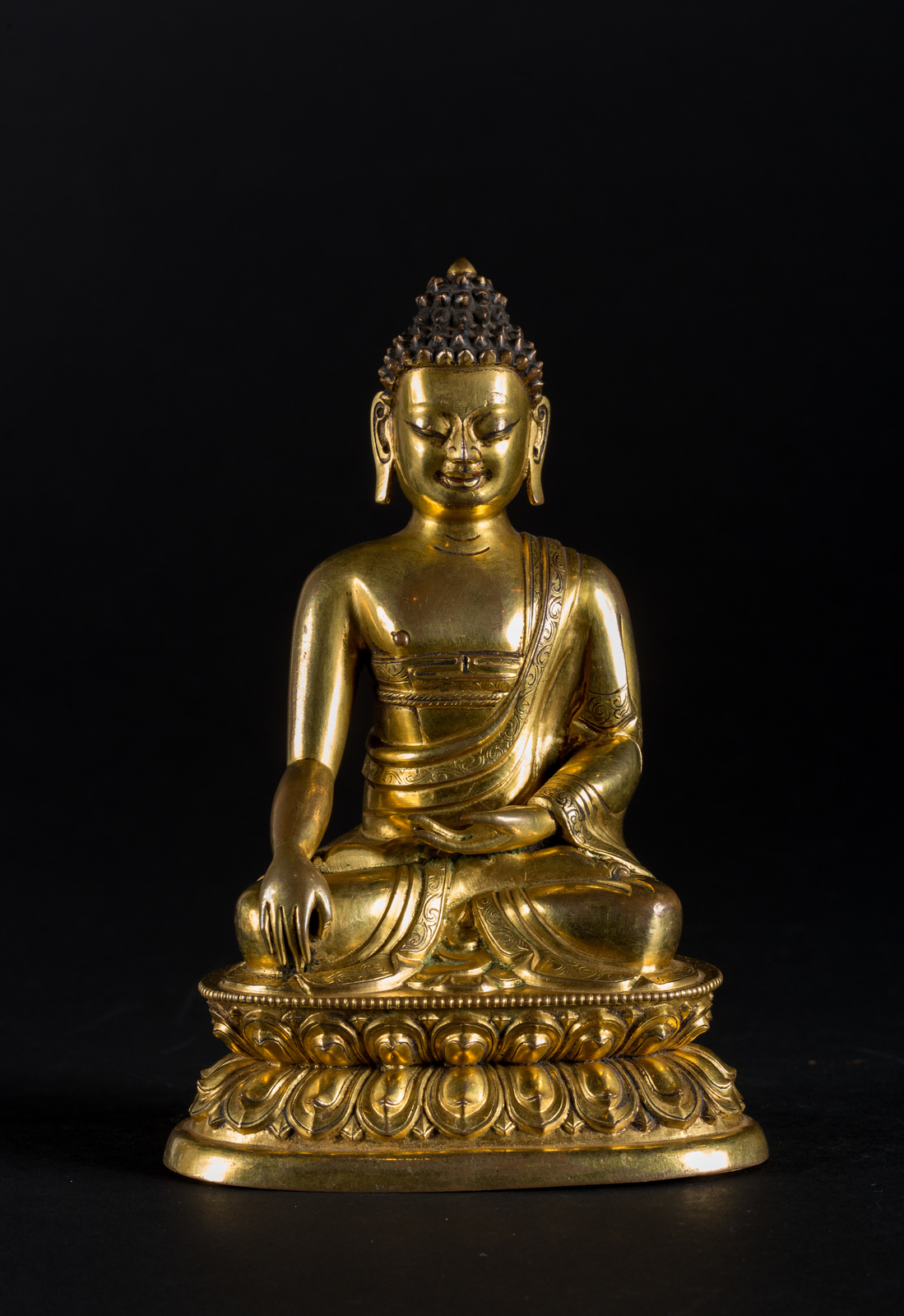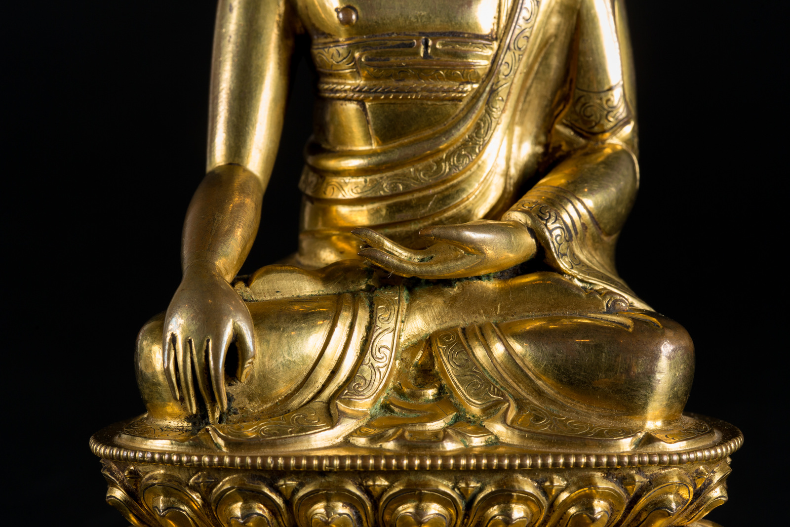 Arte Cinese Figura in rame dorato raffigurante Buddha Sakyamuni Cino-mongola,...
