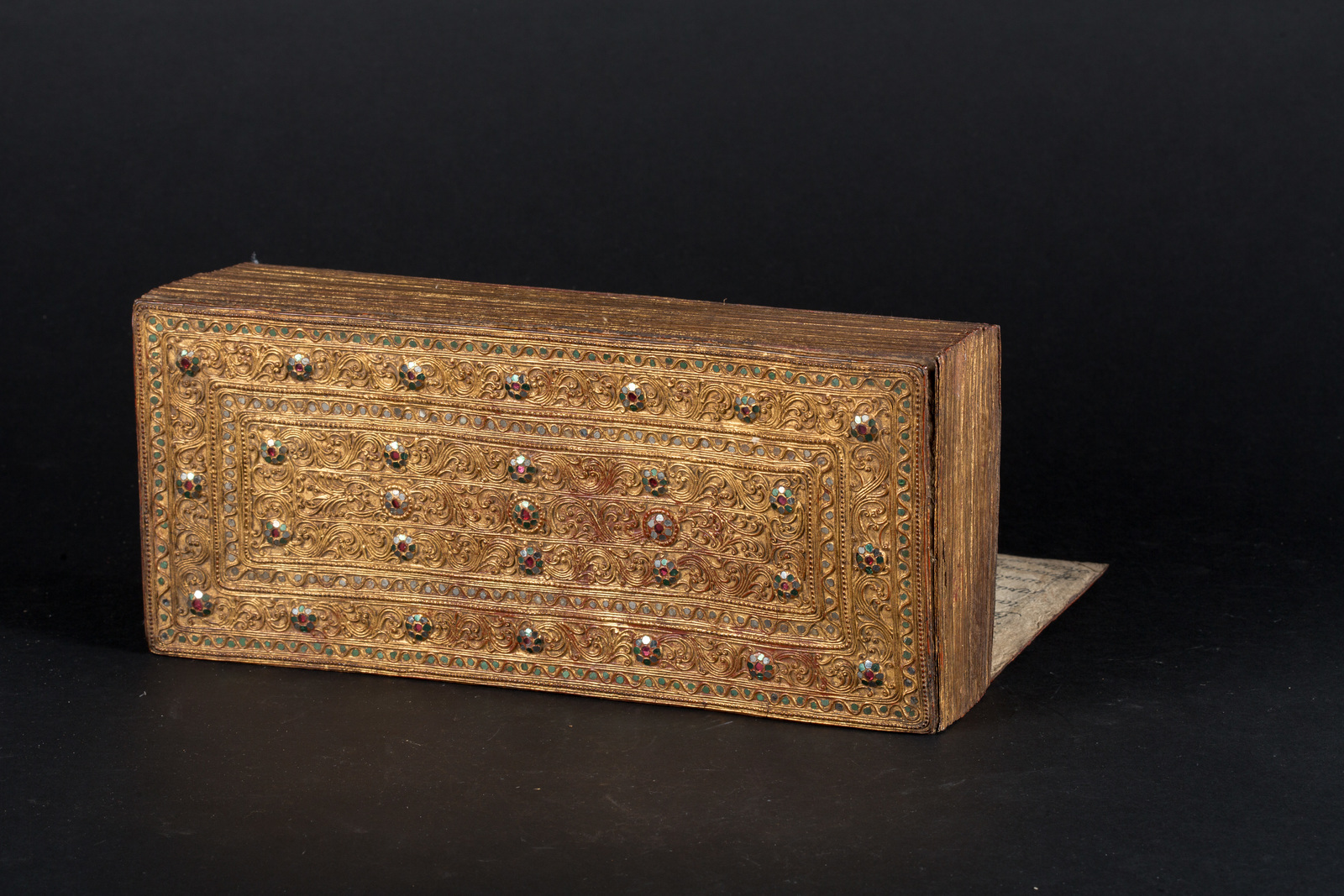 Arte Sud-Est Asiatico A prayer book with gilt lacquered cover