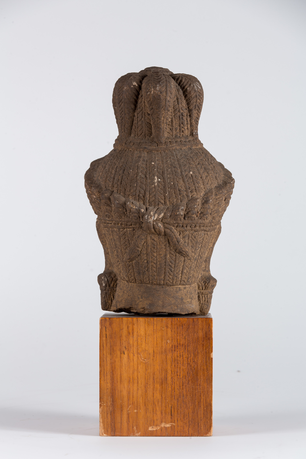 Arte Sud-Est Asiatico A stone carved head of Buddha on a wooden base