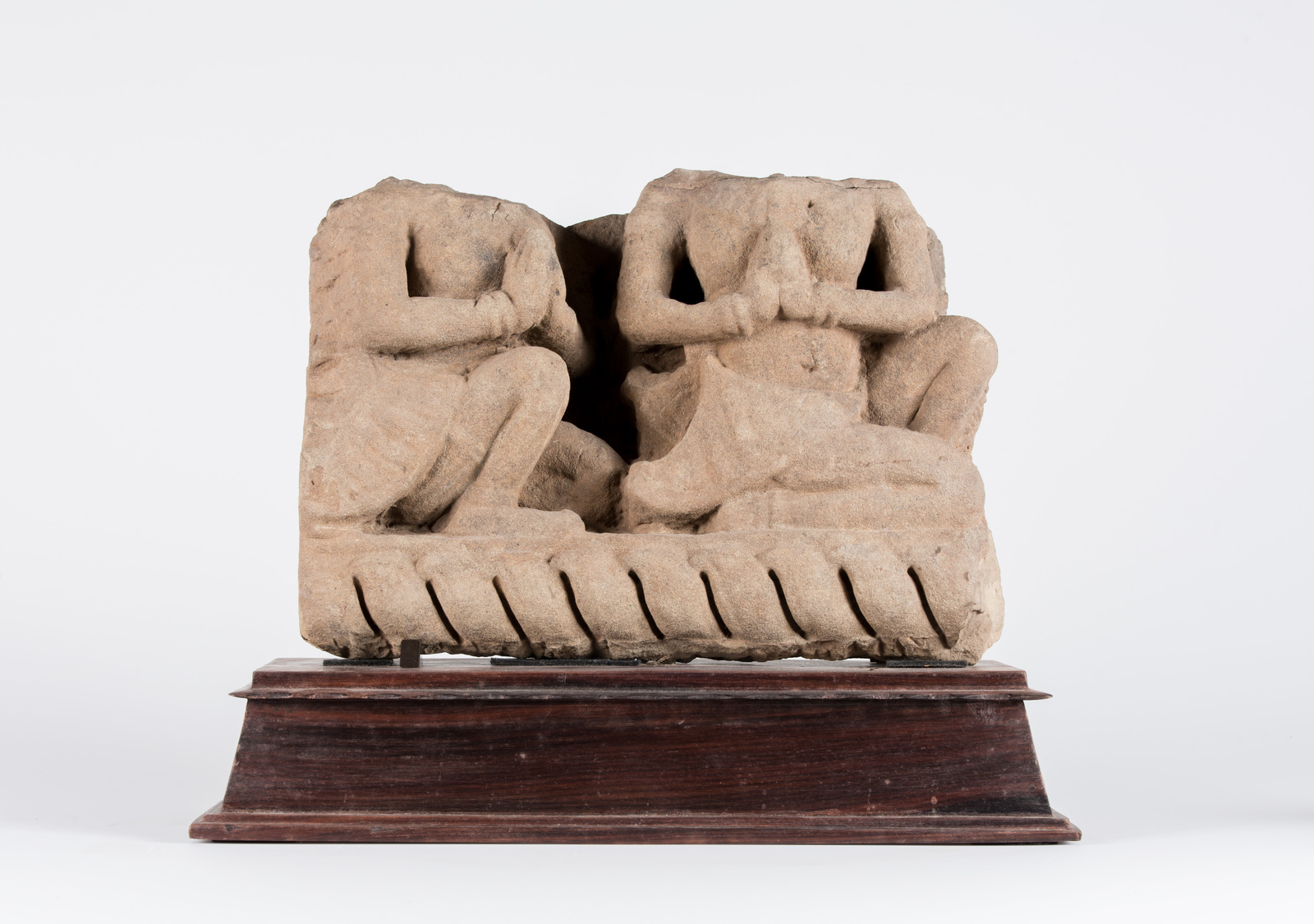Arte Sud-Est Asiatico A Khmer stone frieze depicting two acephalous worshippers Cambodia, Khmer empire, 13th century . . Cm 36,00 x 25,00.