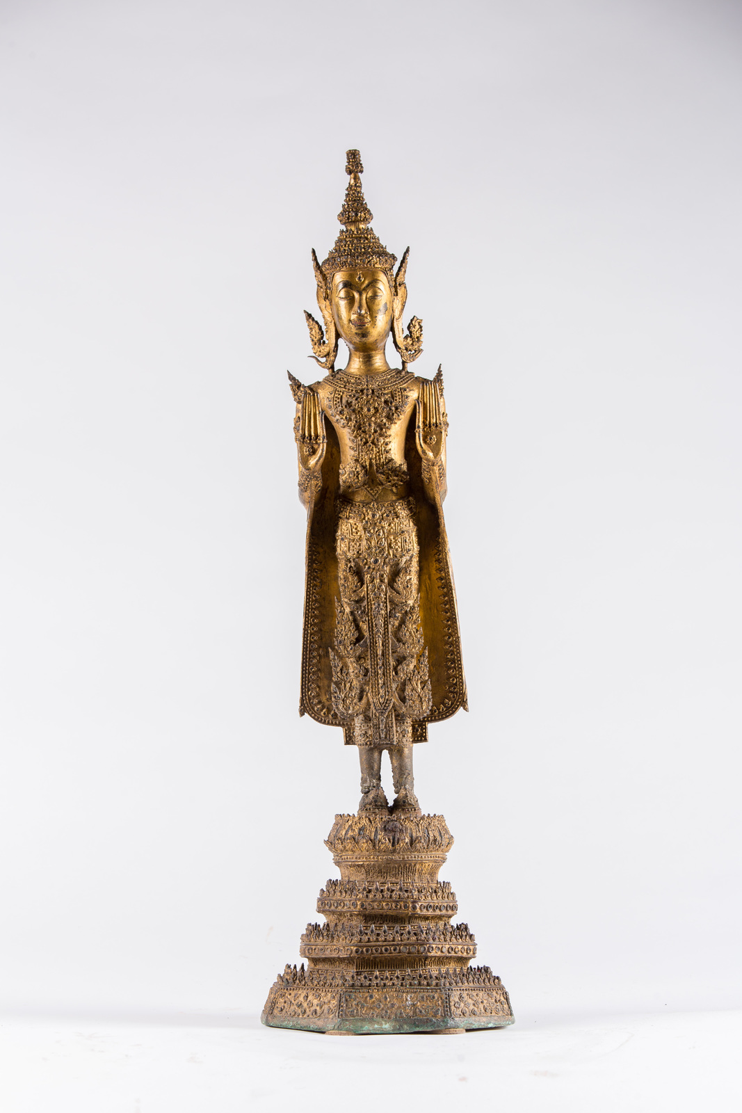 Arte Sud-Est Asiatico A Rattanakosin gilt lacquered bronze statue of Buddha