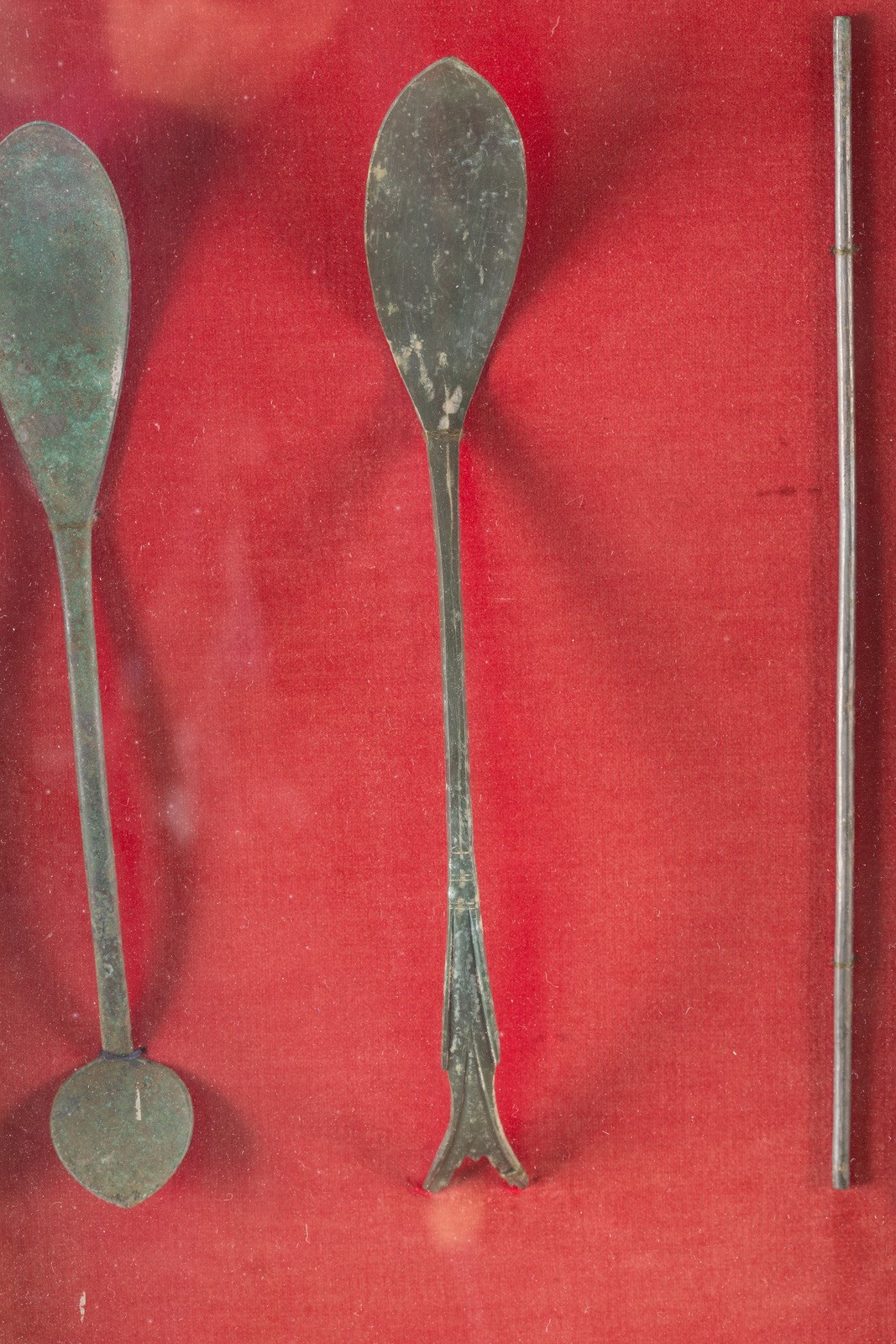 Arte Sud-Est Asiatico A pair of bronze spoons and sticks Korea, Silla dynasty, 8th - 9th century. . Cm 26,50.