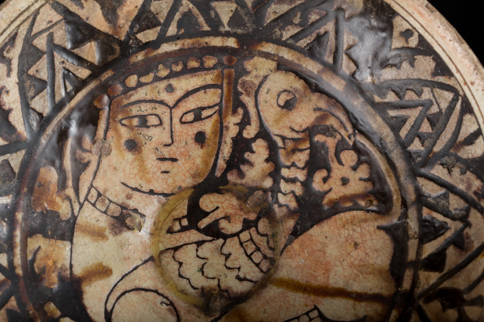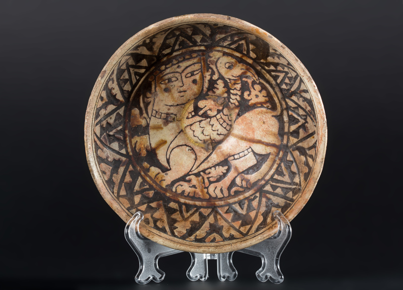Arte Islamica Ciotola in terracotta decorata con sfinge