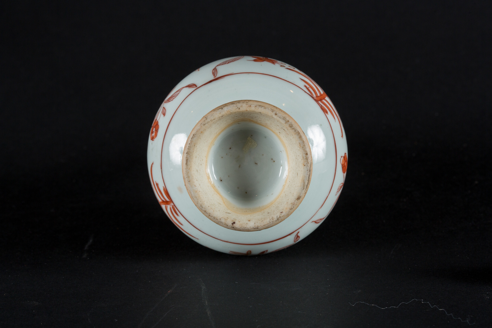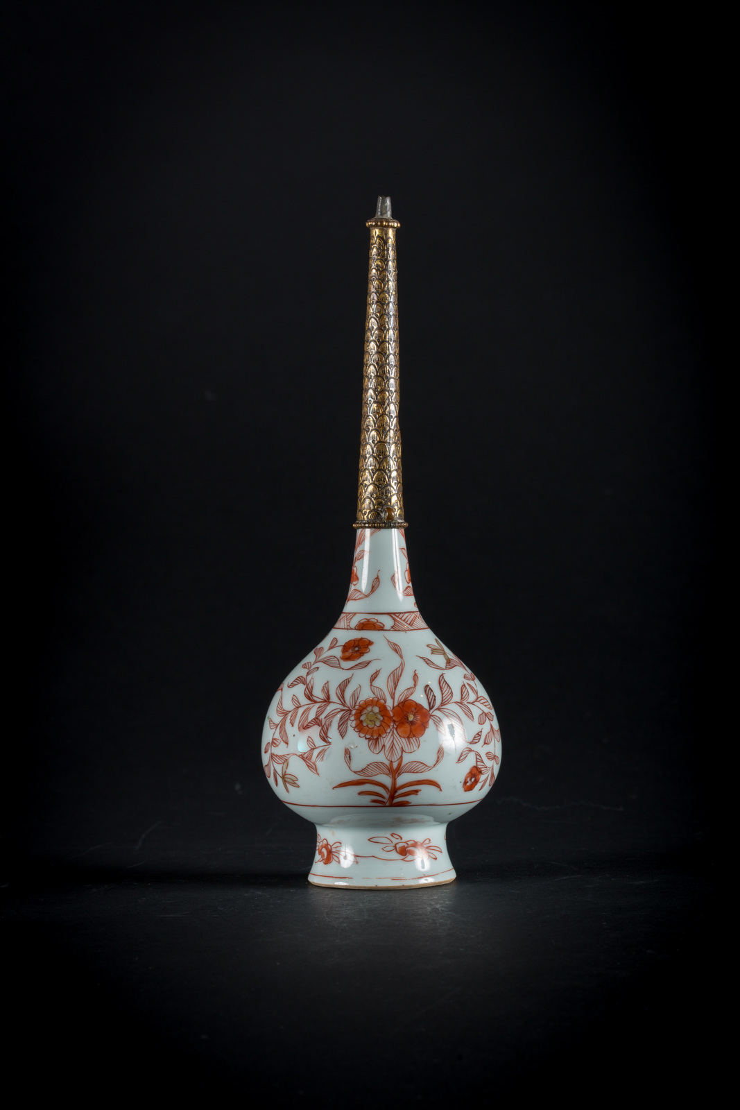 Arte Islamica A Kangxi Chinese red and white porcelain bottle with tombak mount China/Turkey, 18th century . . Cm 10,00 x 26,00.