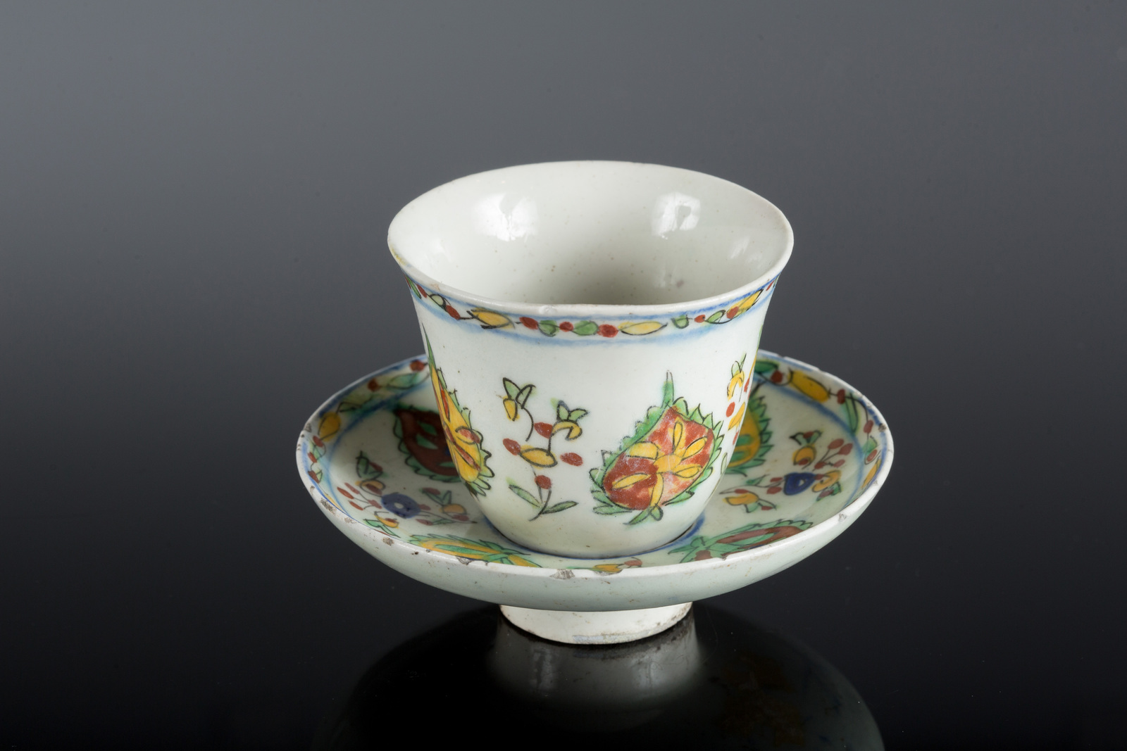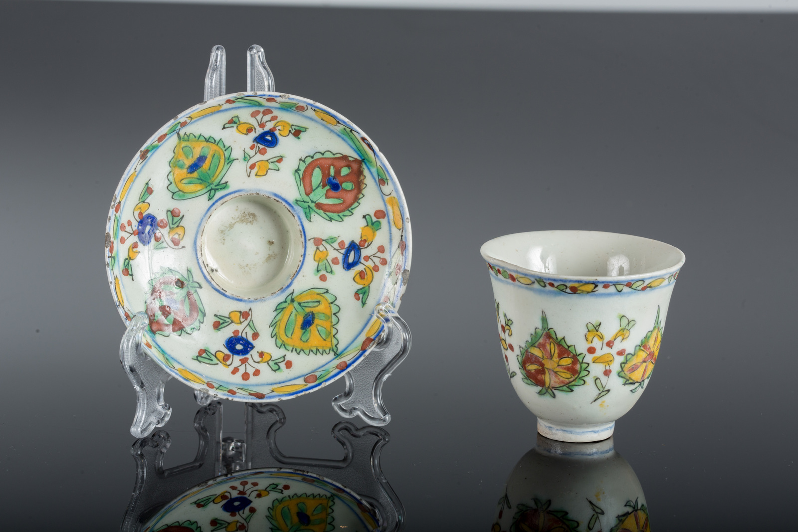 Lot 332 | Arte Islamica Tazza e piattino Kutahya Turchia, Kutahya, XVIII secolo . -. Cm...