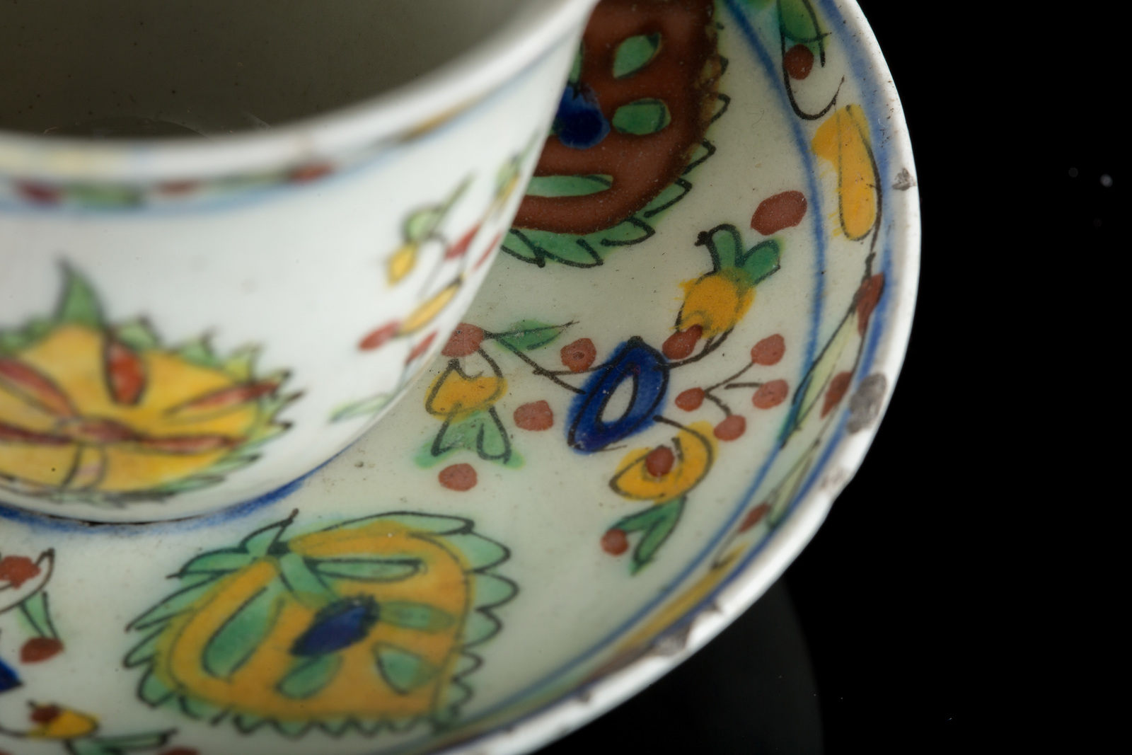 Arte Islamica A Kutahya cup and saucer Turkey, Kutahya, 18th century. . Cm 11,00 x 8,00.