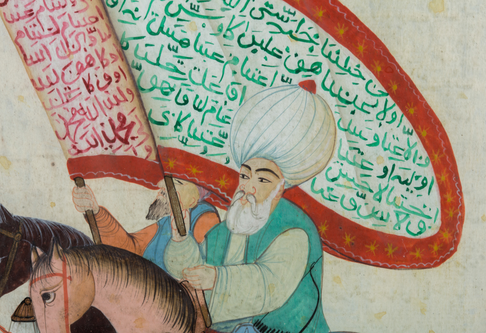 Arte Islamica Dipinto raffigurante un sultano ottomano con stendardo