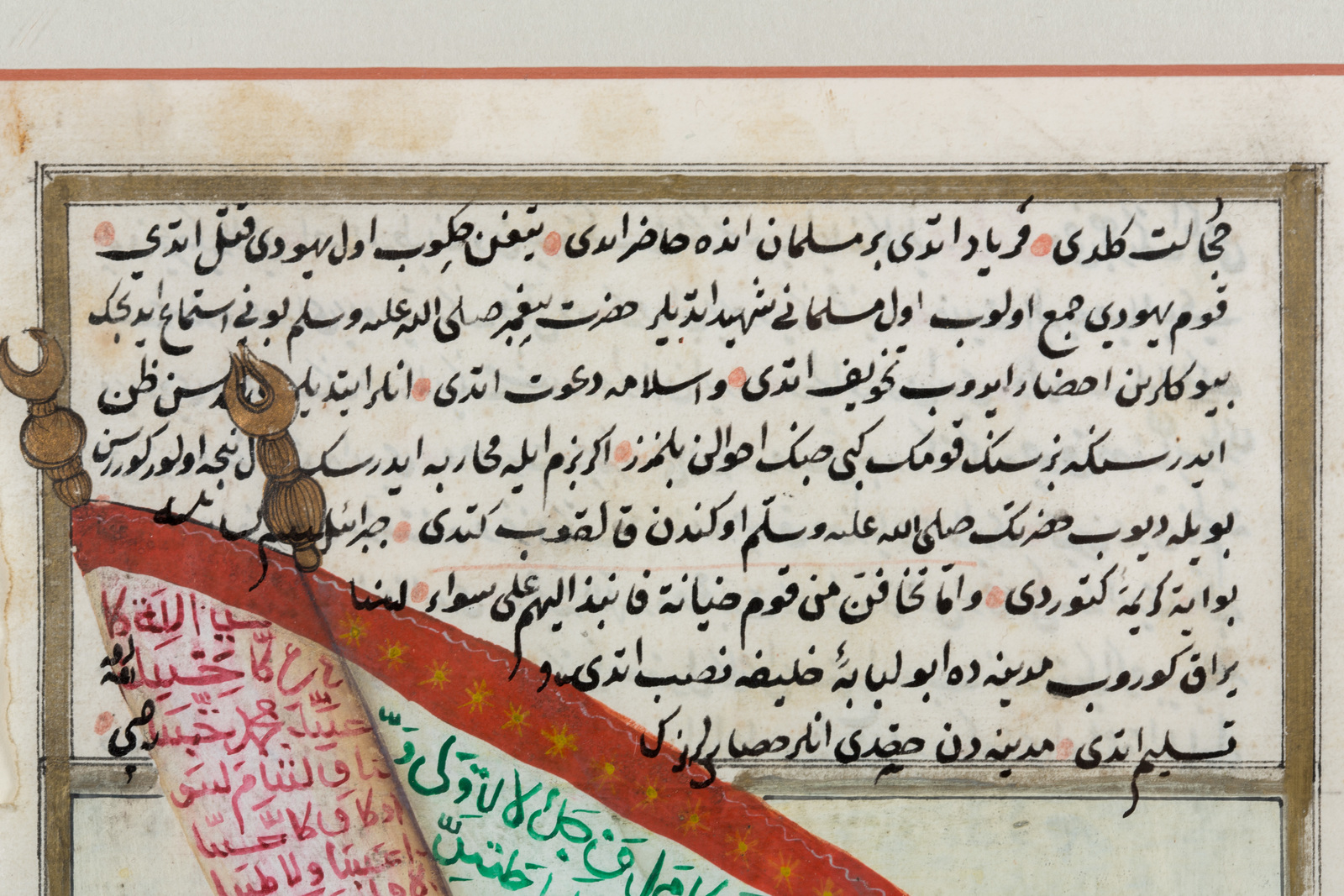 Arte Islamica An illustraded folio from a manuscript possibly depicting Sultan Osman I with a standard