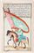 Turchia, XIX secolo . -. Cm 16,00 x 25,50. Otto righe di testo scritto con inchiostro nero su colonna singola aprono la pagina che prosegue con la raffigurazione di due uomini a cavallo con bandiere iscritte. Il primo, recante bandiera verde, potrebbe essere il sultano Ottomano Osman I (r. 1326 - 59)