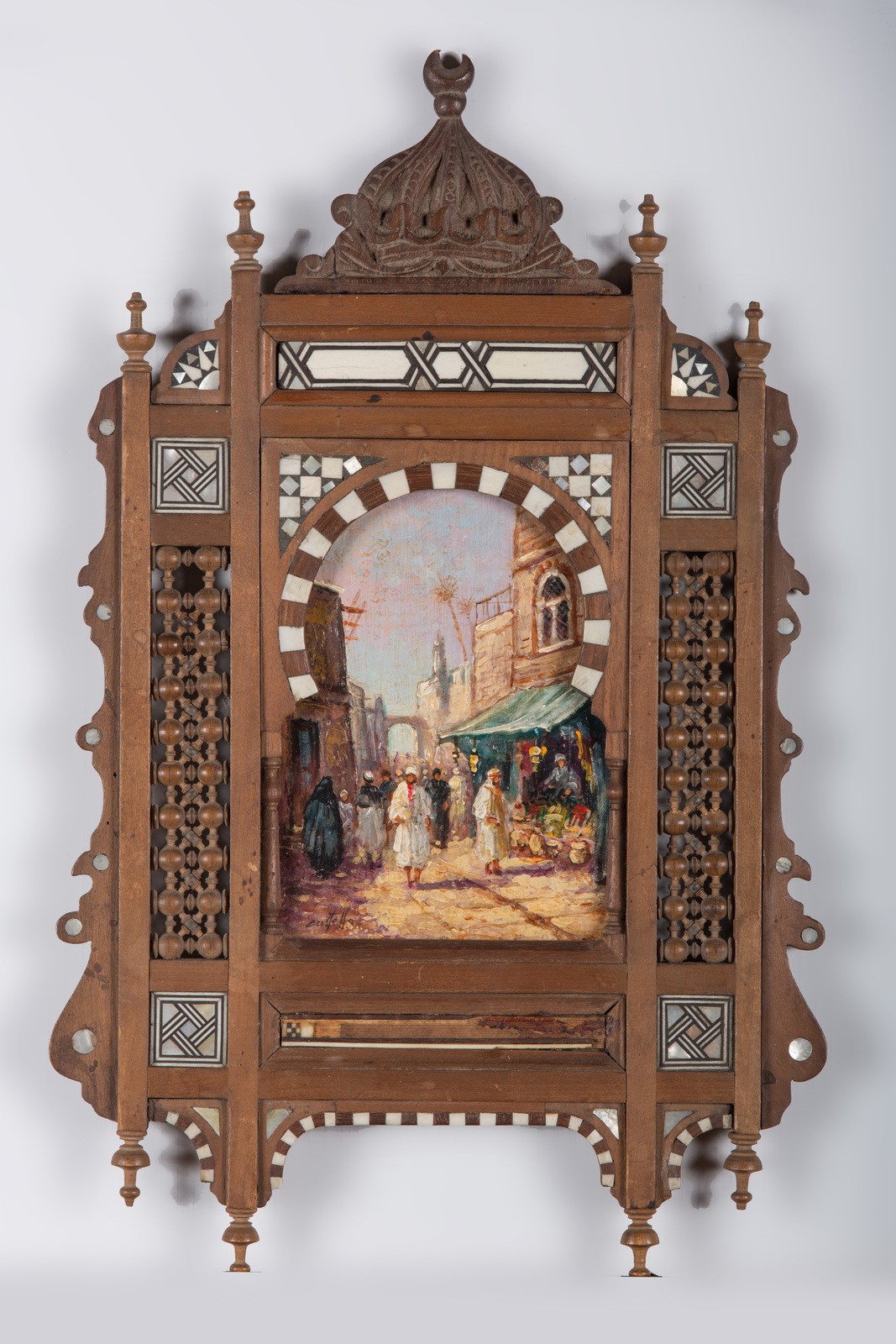 Arte Islamica A pair of orientalist paintings within a wooden architectural frame