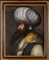 Olio su tela. . Cm 50,00 x 64,50. Bellissimo ritratto del sultano raffigurato di profilo con la lunga barba appuntita, un mantello riccamente decorato ed un grande turbante bombato. L'iscrizione in alto a sinistra lo identifica come Baiazetes I.