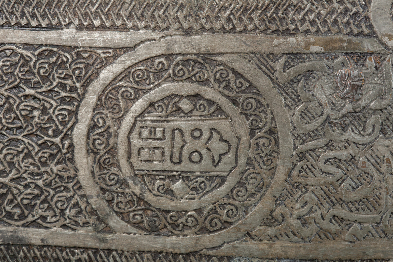 Arte Islamica A Mamluk tinned copper lunch box with pen case blazon